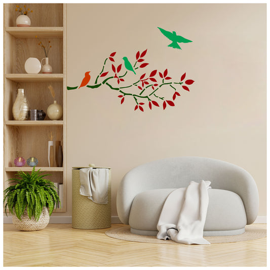 Bird Perching On Tree Design New Stencils for Wall Painting (KDMD1409)