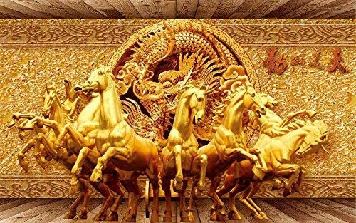 Vertical Blinds for Windows,French Door and Sliding Door Blinds for Smart Home Office, (Customized Size, Golden Seven Horses)