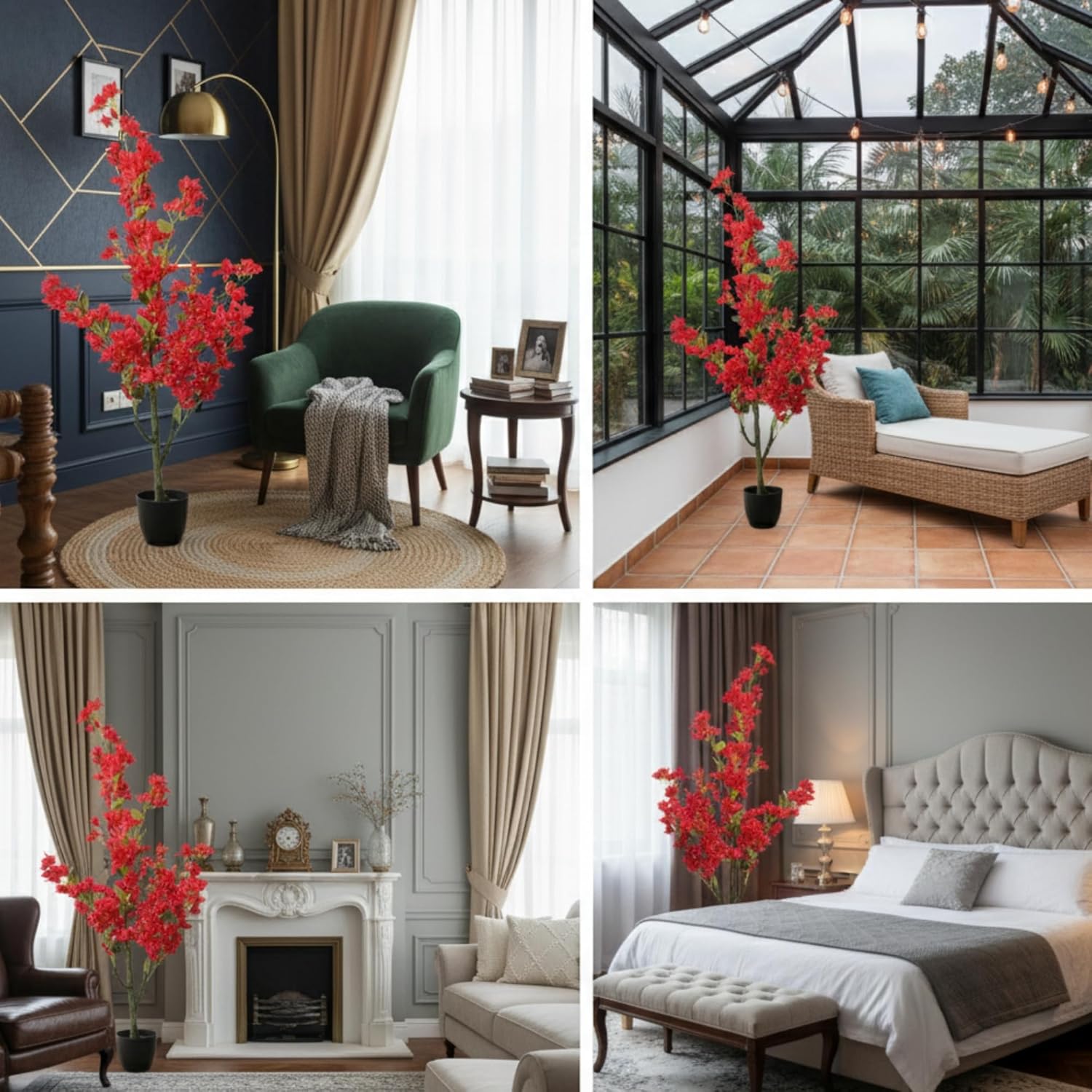 Bring color and charm into your space with an Artificial Bougainvillea Plant. Unlike real plants, it will never wither, fade, or require sunlight, watering, or pruning. A simple wipe with a damp cloth is enough to keep it looking fresh all year round. perfect for adding elegance and greenery to your living room, balcony, office, entryway, hotels, or even as wedding decor.