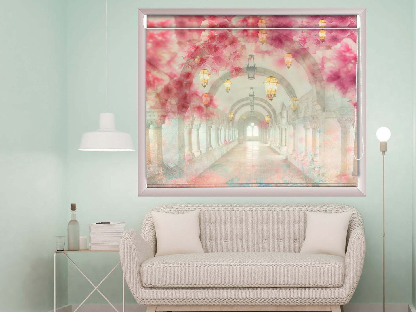 Printed Blackout Roller Blinds for Window Pink Flowers