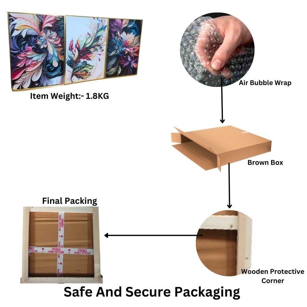 • Dimensions: Each painting measures approximately 41 cm x 61 cm, providing a substantial yet manageable size for wall display.