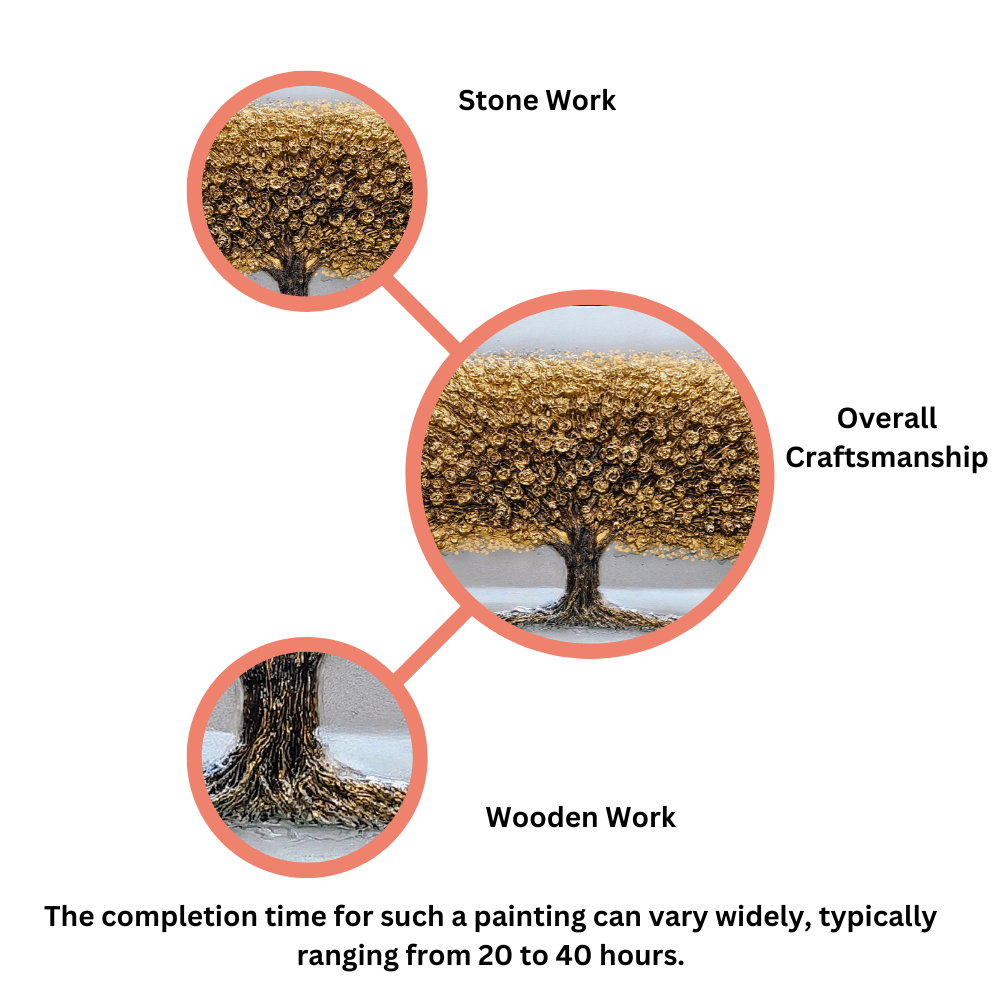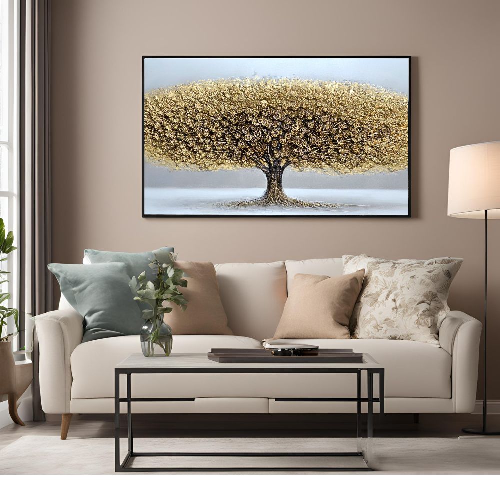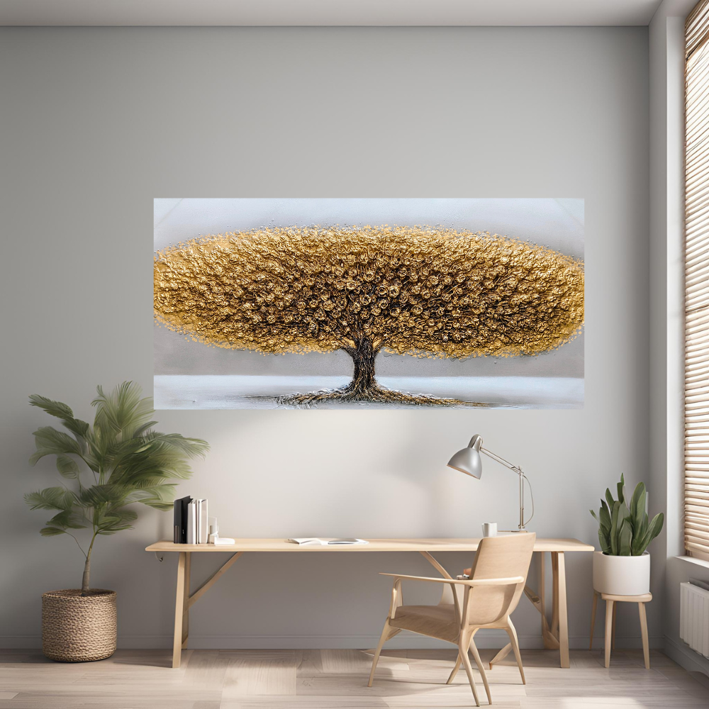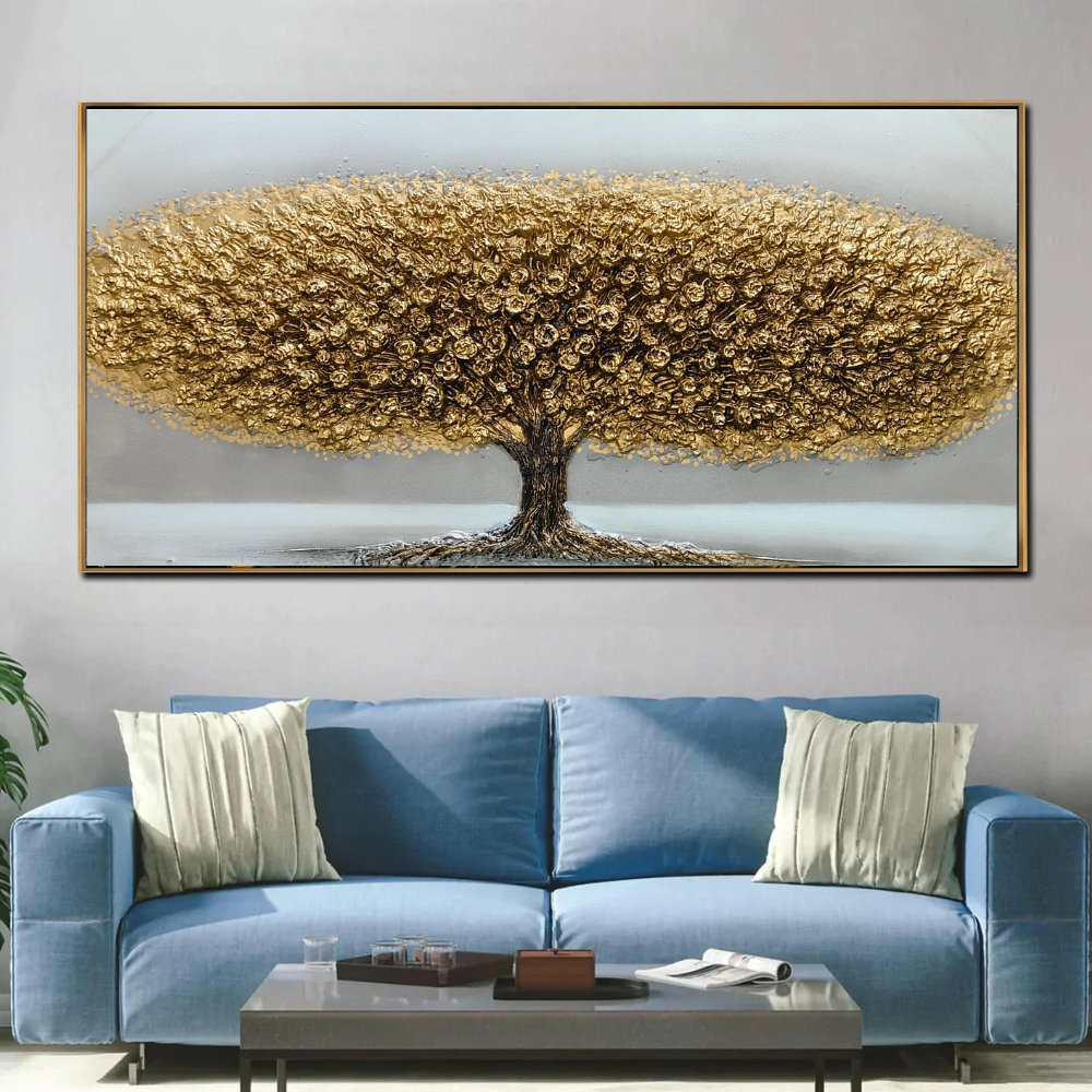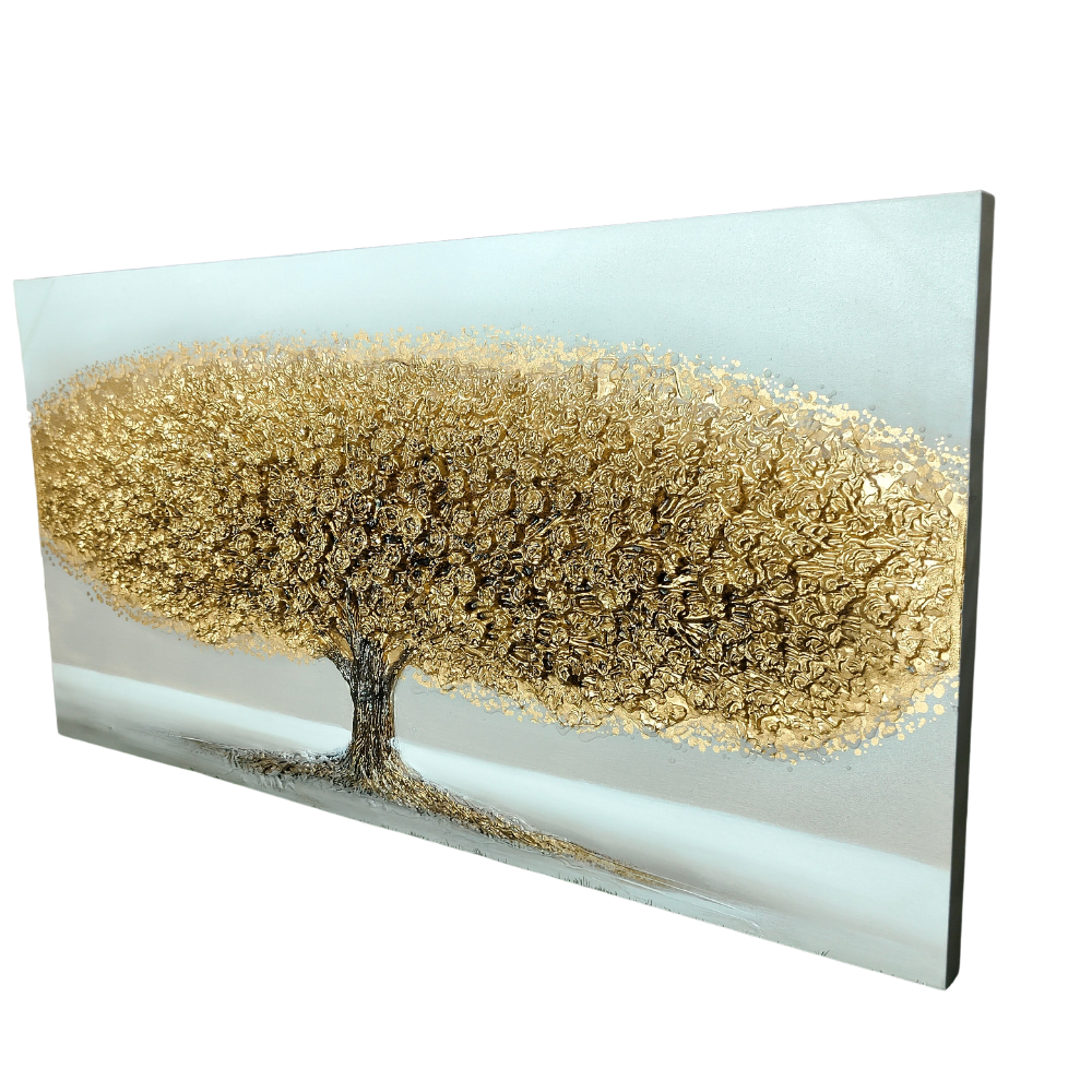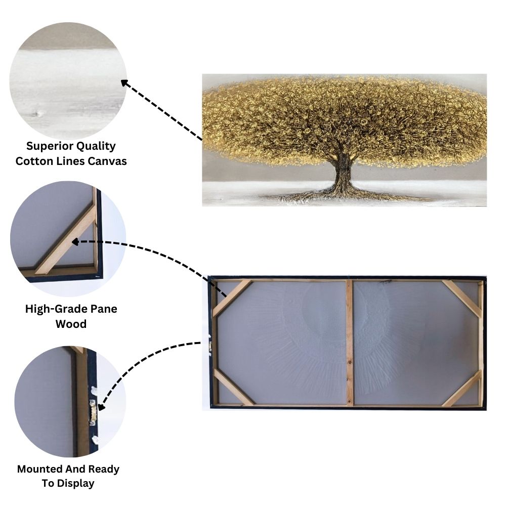 Handmade Embossed Canvas Art Painting With Wooden Frame for Wall Decor, Large Golden Tree Art, Size - 61 X 122 Cm