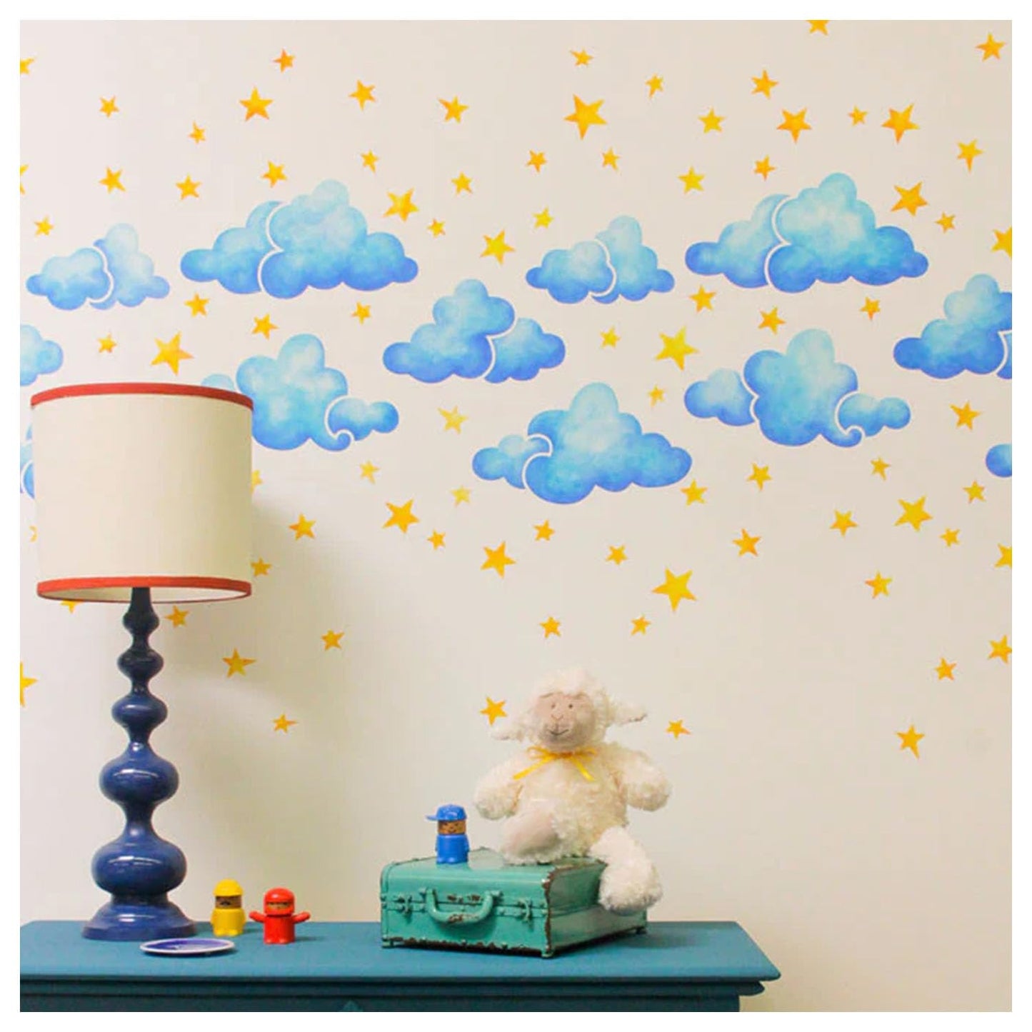 Latest Clouds and Stars kids Room Wall Stencil (KDRDSS-1258)