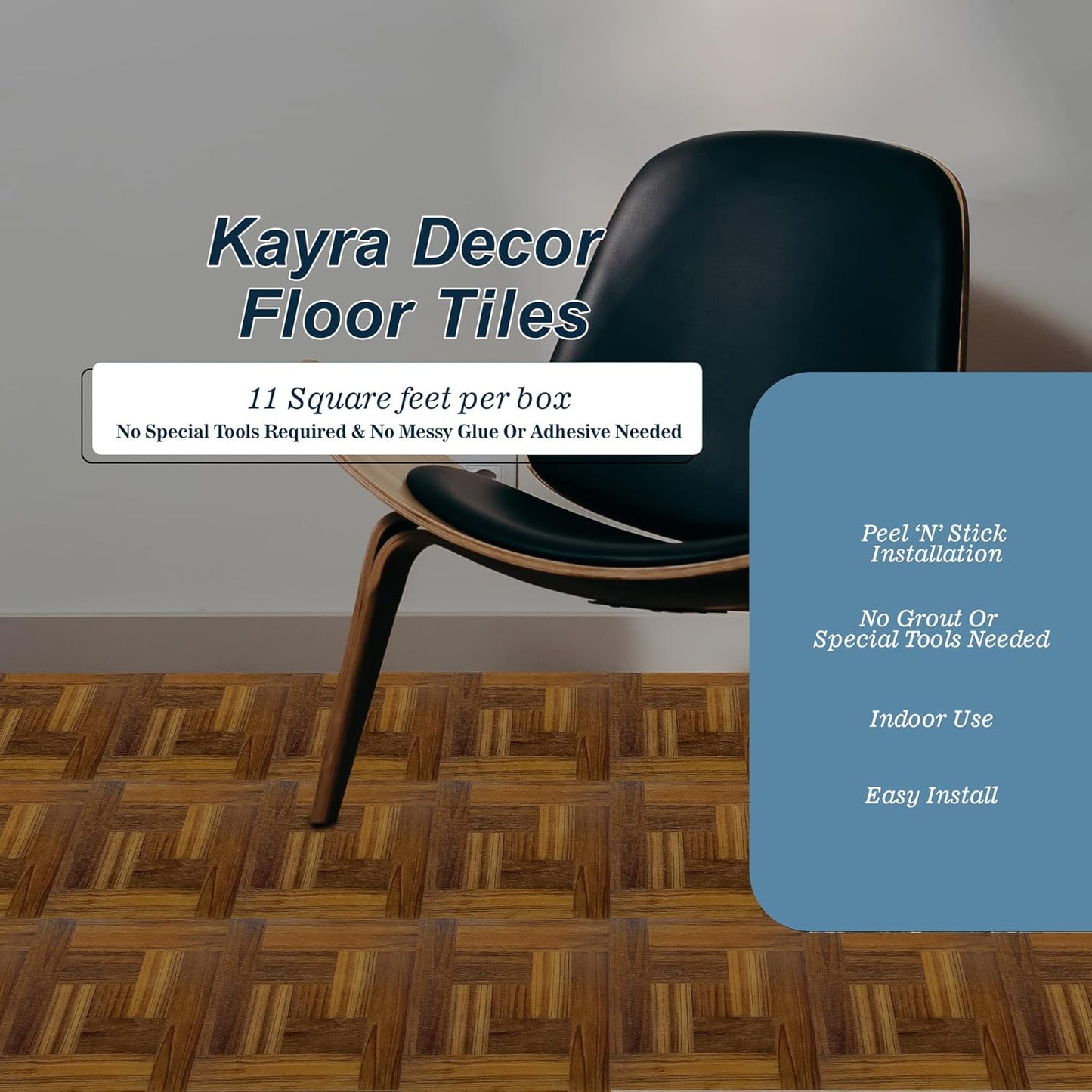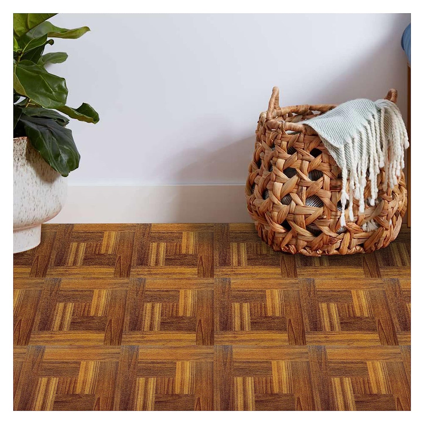 Peel and stick vinyl floor tiles 30 X 30cm (11pcs in a pack) covering 11sqft area- Brown