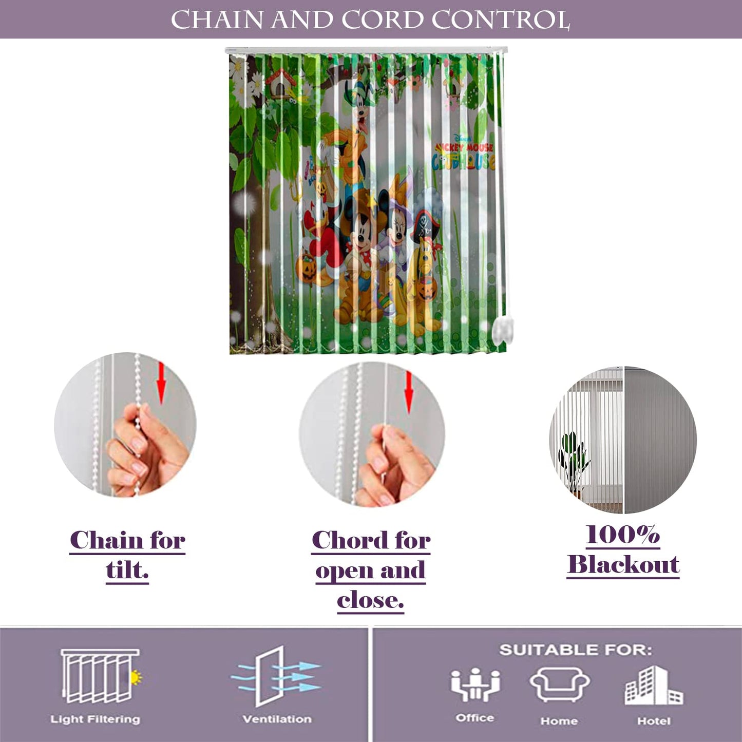 Vertical Blinds for Windows,French Door and Sliding Door Blinds for Smart Home Office, (Customized Size, Mickey Mouse Club)