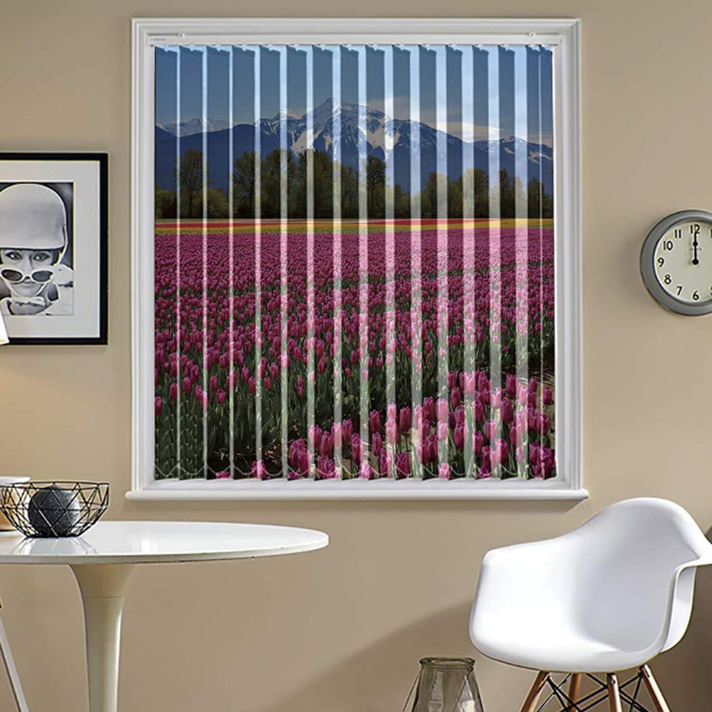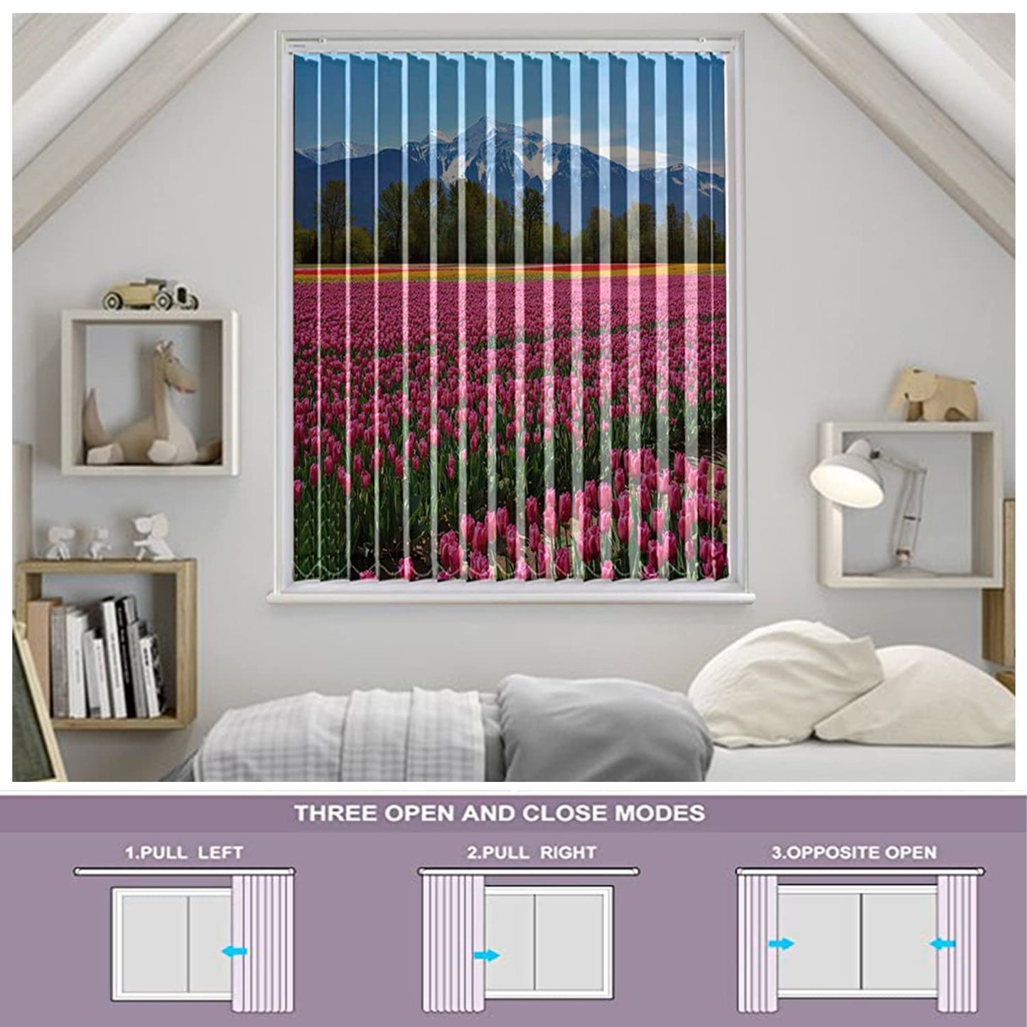 Vertical Blinds for Windows,French Door and Sliding Door Blinds for Smart Home Office, (Customized Size, Mountain and Flowers)