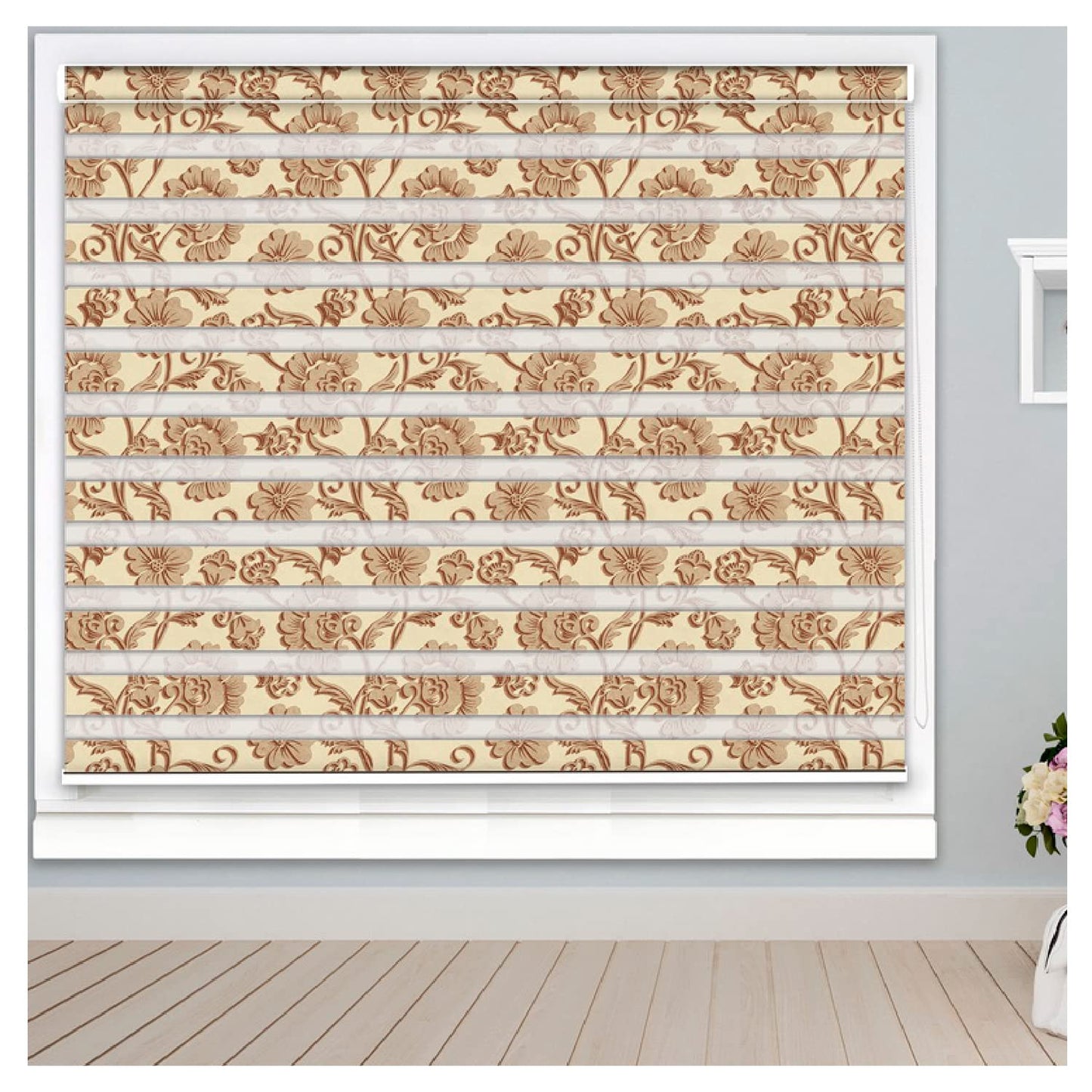Zebra Blinds for Windows and Doors with Dual Shade, Horizontal Stripes, Blinds for Home & Office (Customized Size, 3D Floral Print Design)