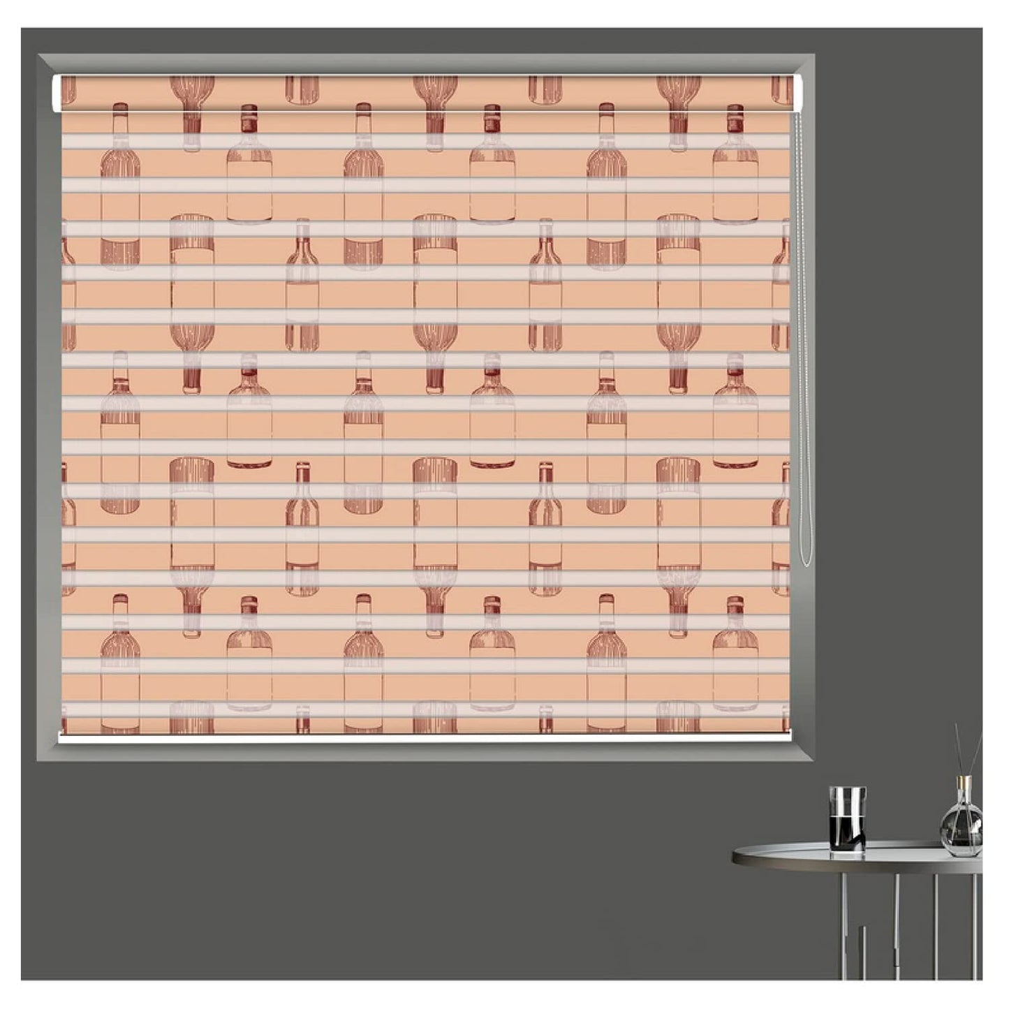 Zebra Blinds for Windows and Doors with Dual Shade, Horizontal Stripes, Blinds for Home & Office (Customized Size, Bottle Art Design)