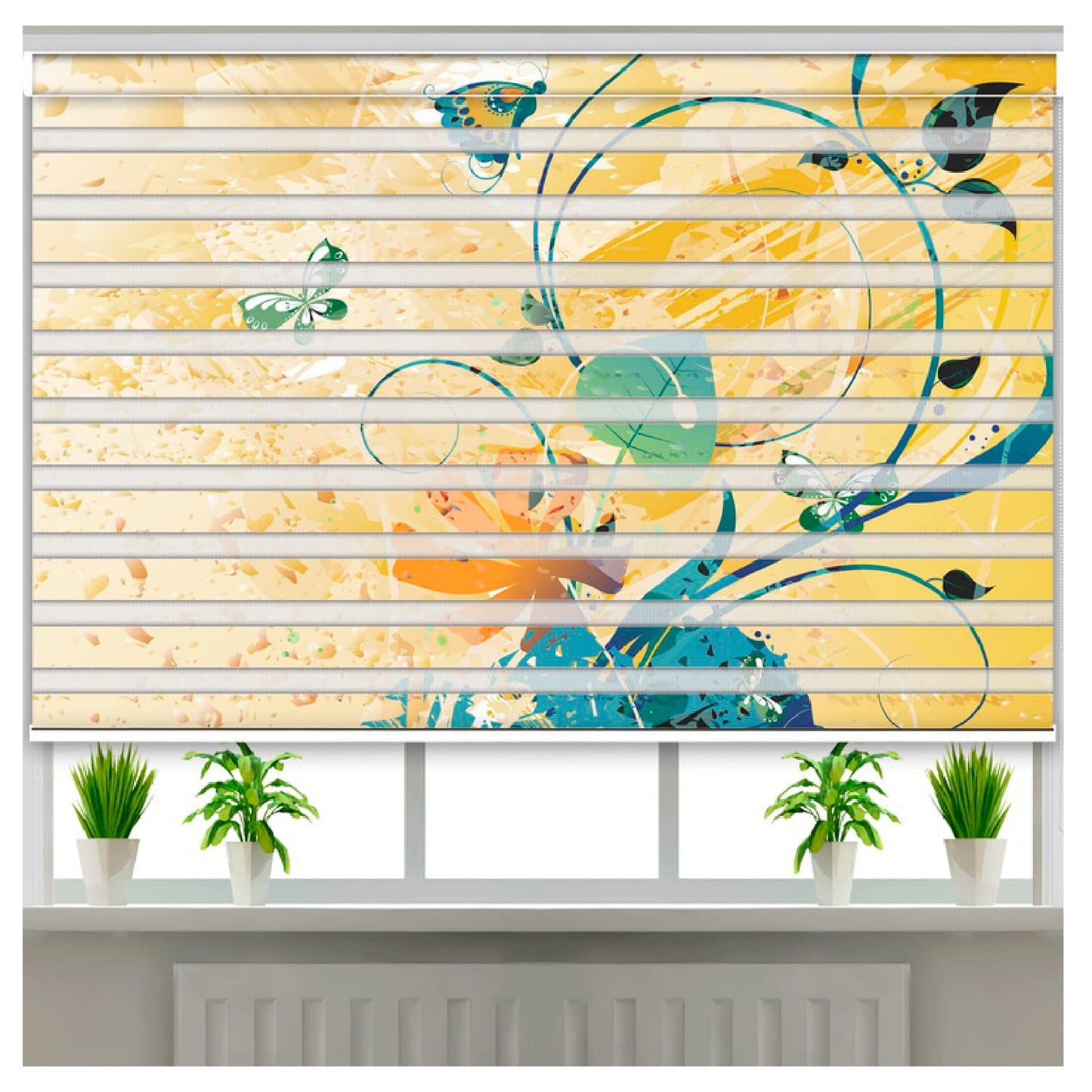 Zebra Blinds for Windows and Doors with Dual Shade, Horizontal Stripes, Blinds for Home & Office (Customized Size, Butterfly Art Design)
