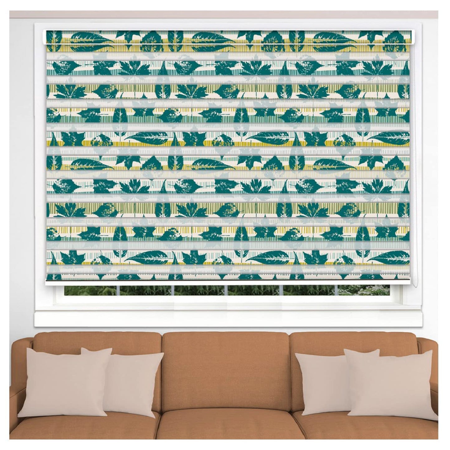 Zebra Blinds for Windows and Doors with Dual Shade, Horizontal Stripes, Blinds for Home & Office (Customized Size, Green Leaves Art)