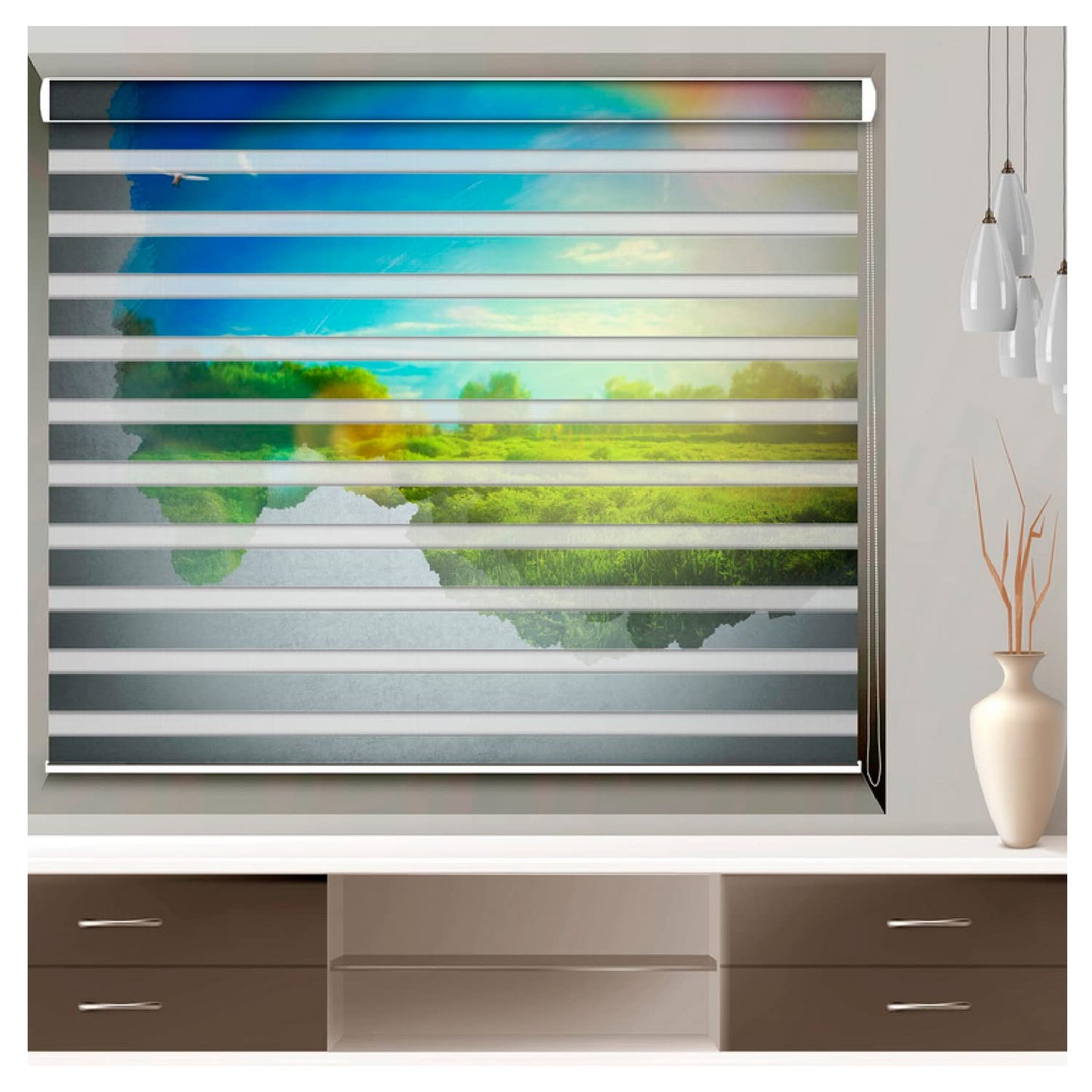 Zebra Blinds for Windows and Doors with Dual Shade, Horizontal Stripes, Blinds for Home & Office (Customized Size, Green Scenery)