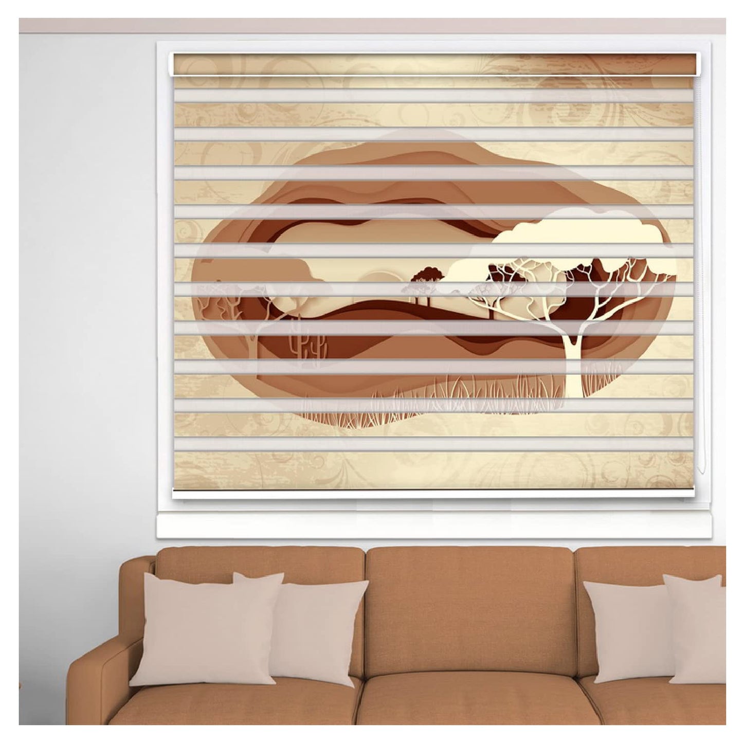 Zebra Blinds for Windows and Doors with Dual Shade, Horizontal Stripes, Blinds for Home & Office (Customized Size, Tree Art Design)