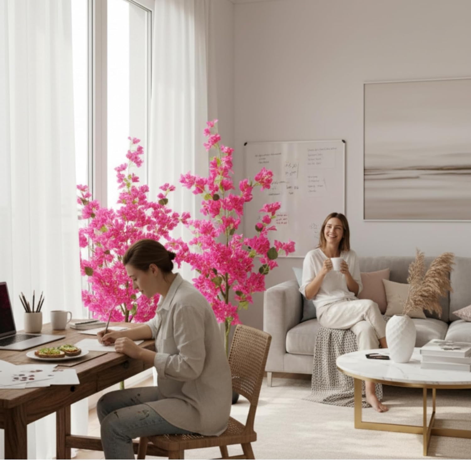 Bring color and charm into your space with an Artificial Bougainvillea Plant. Unlike real plants, it will never wither, fade, or require sunlight, watering, or pruning. A simple wipe with a damp cloth is enough to keep it looking fresh all year round. perfect for adding elegance and greenery to your living room, balcony, office, entryway, hotels, or even as wedding decor.