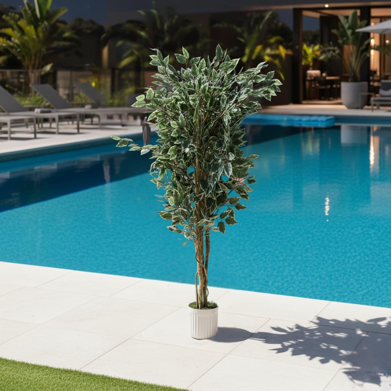 • Realistic Detailing: Silk-textured white edged leaves and a sturdy, lifelike trunk