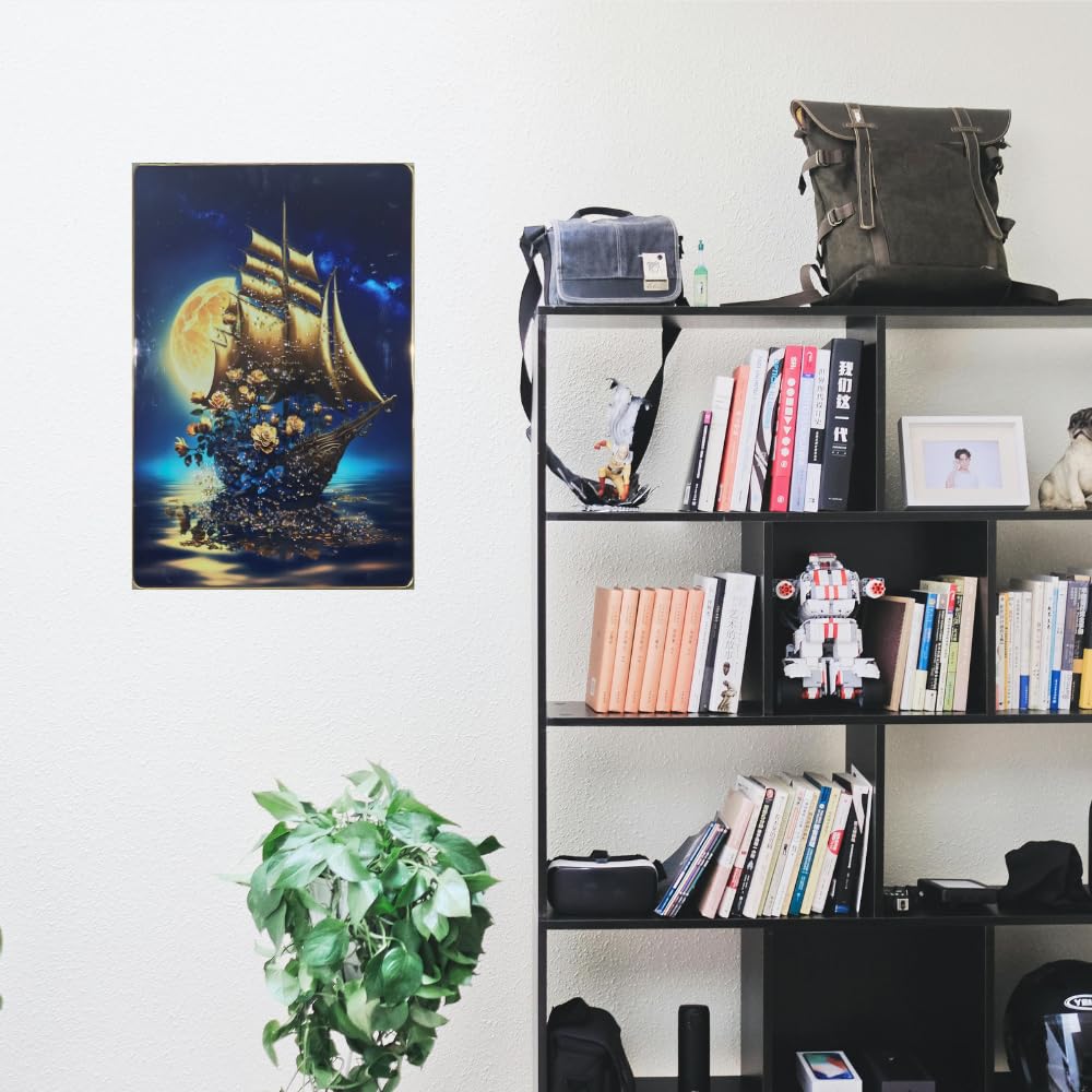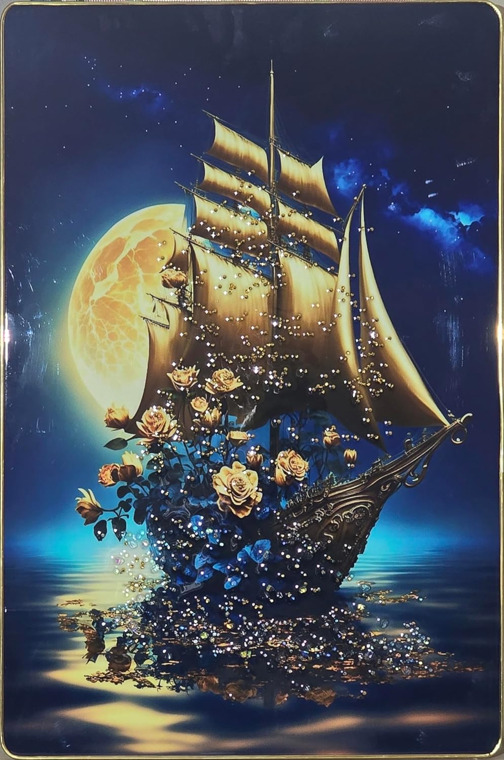 Crystal Painting for Wall Decoration with Golden Frame, Size 40 X 61 Cm- Crystal Ship