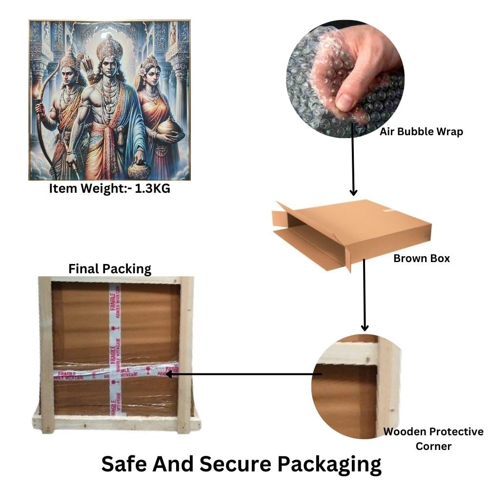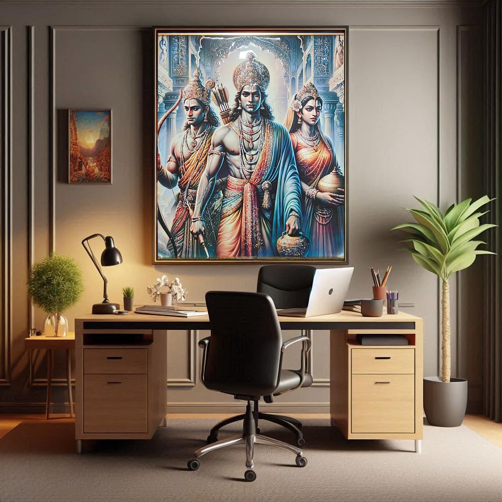 Inspires Devotion and Focus: The serene depiction of Ram, Lakshman, and Seeta Mata serves as a constant reminder of devotion, focus, and inner strength, inspiring these qualities in your daily life.