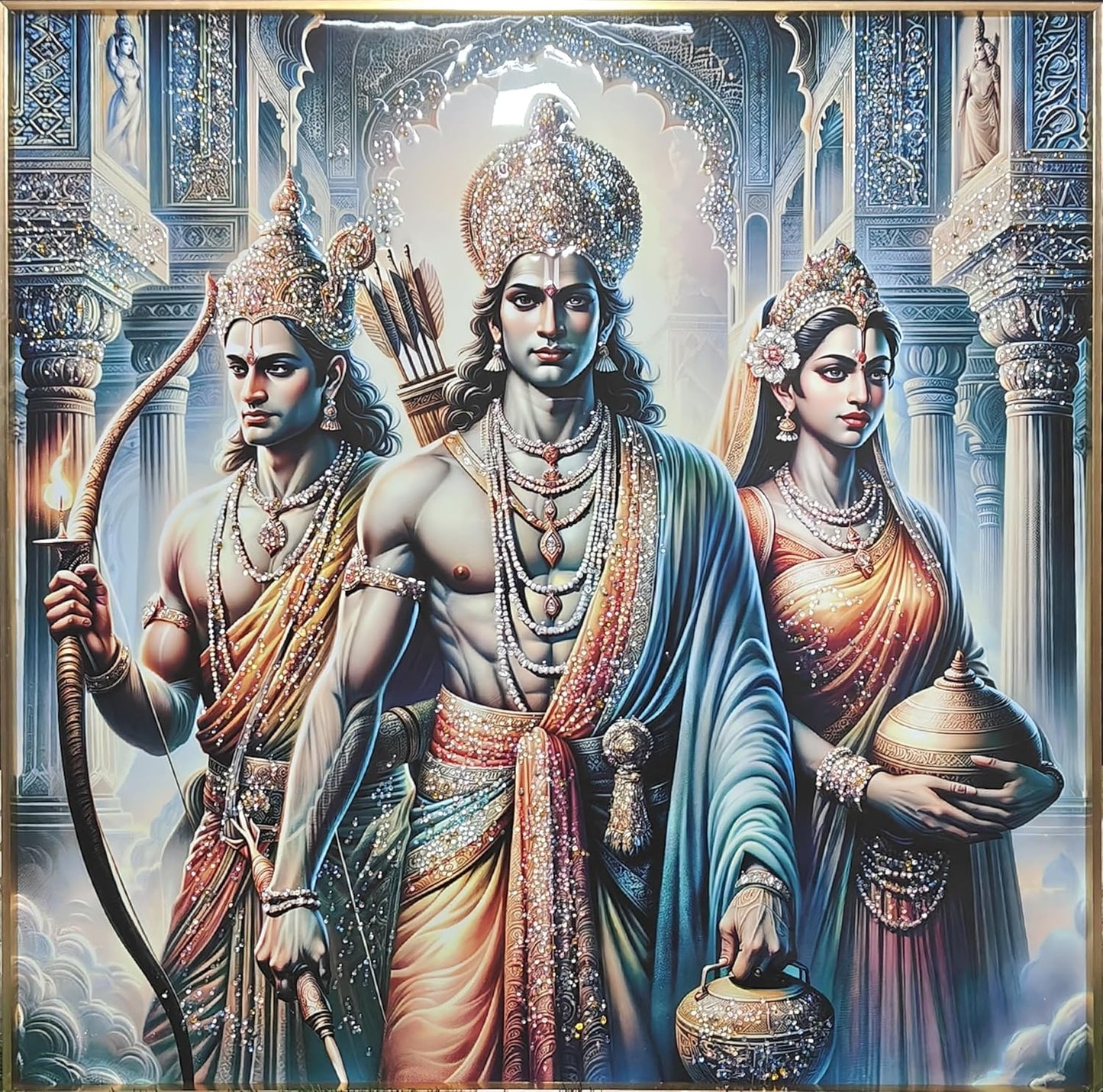 - Divine Presence: This 5D crystal painting beautifully captures the divine trio of Lord Ram, Lakshman, and Seeta Mata, offering a serene and powerful depiction of their divine forms.