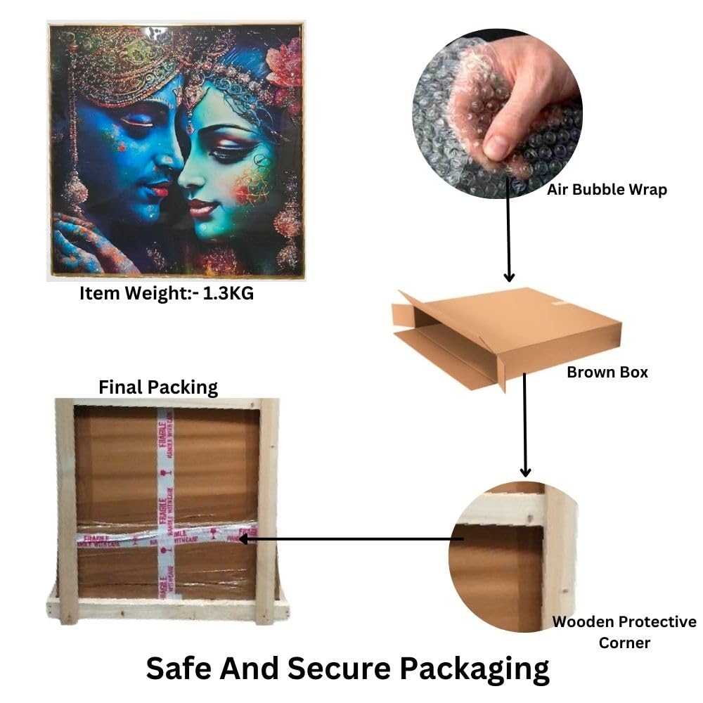 • Divine Depiction: The crystal glass painting for wall features intricate stonework that creates a mesmerizing 5D effect, adding depth and brilliance to the artwork.