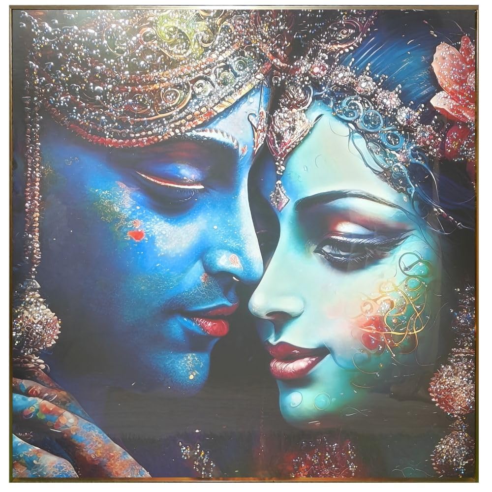 Crystal Painting for Wall Decoration with Golden Frame, Size- 81 X 81 Cm- Crystal Radha Krishna