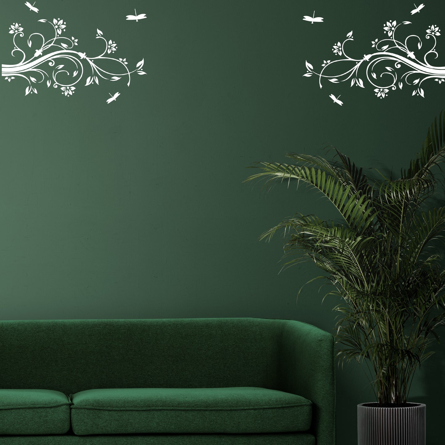Dragonfly Flowers Wall Design Stencil (KHS310)