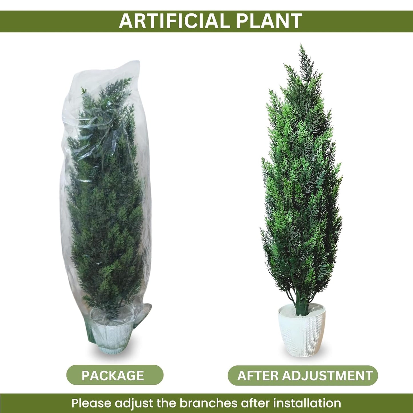 Inside the Box:1 Artificial Cedar Cypress Tree with Pot (Pre-assembled)