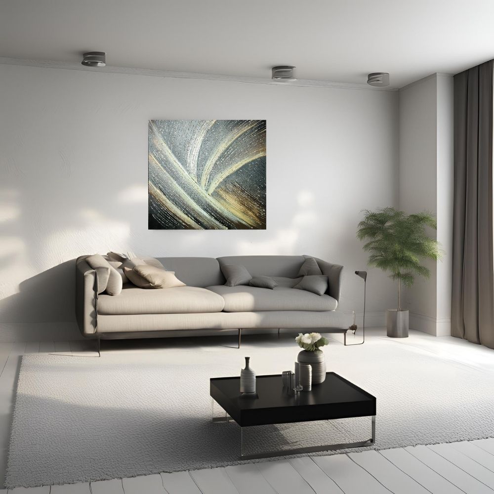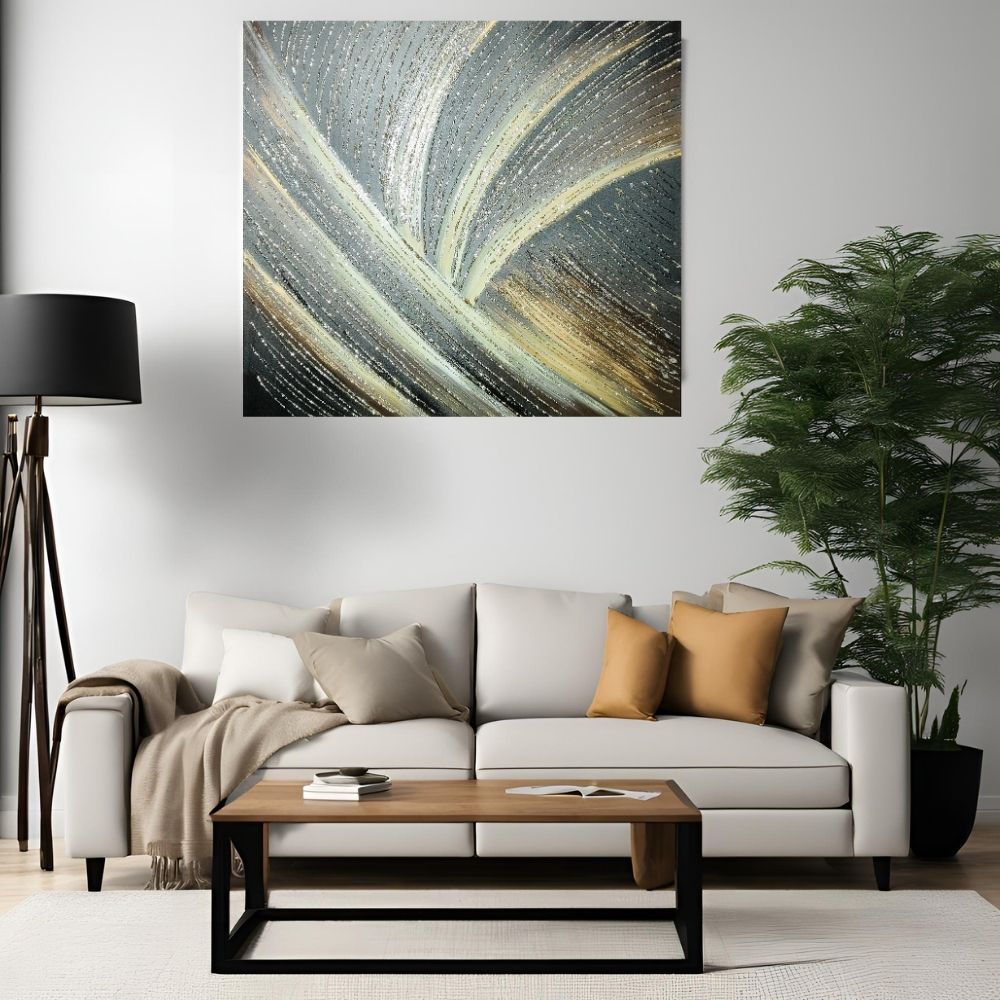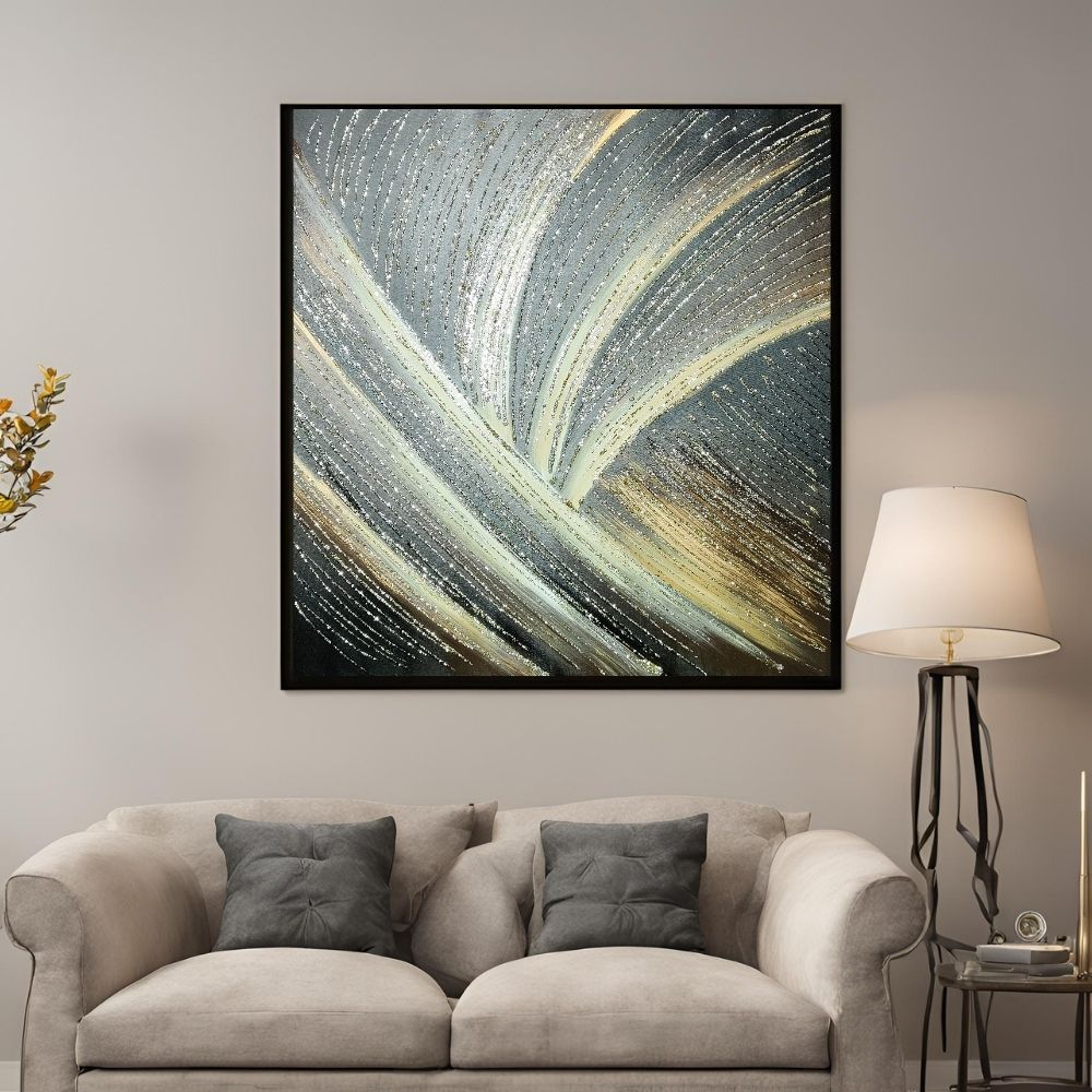 Handmade Embossed Canvas Art Painting With Wooden Frame for Wall Decor, 3D Glitter Artwork, Size - 81 (H) X 81 (W) Cm