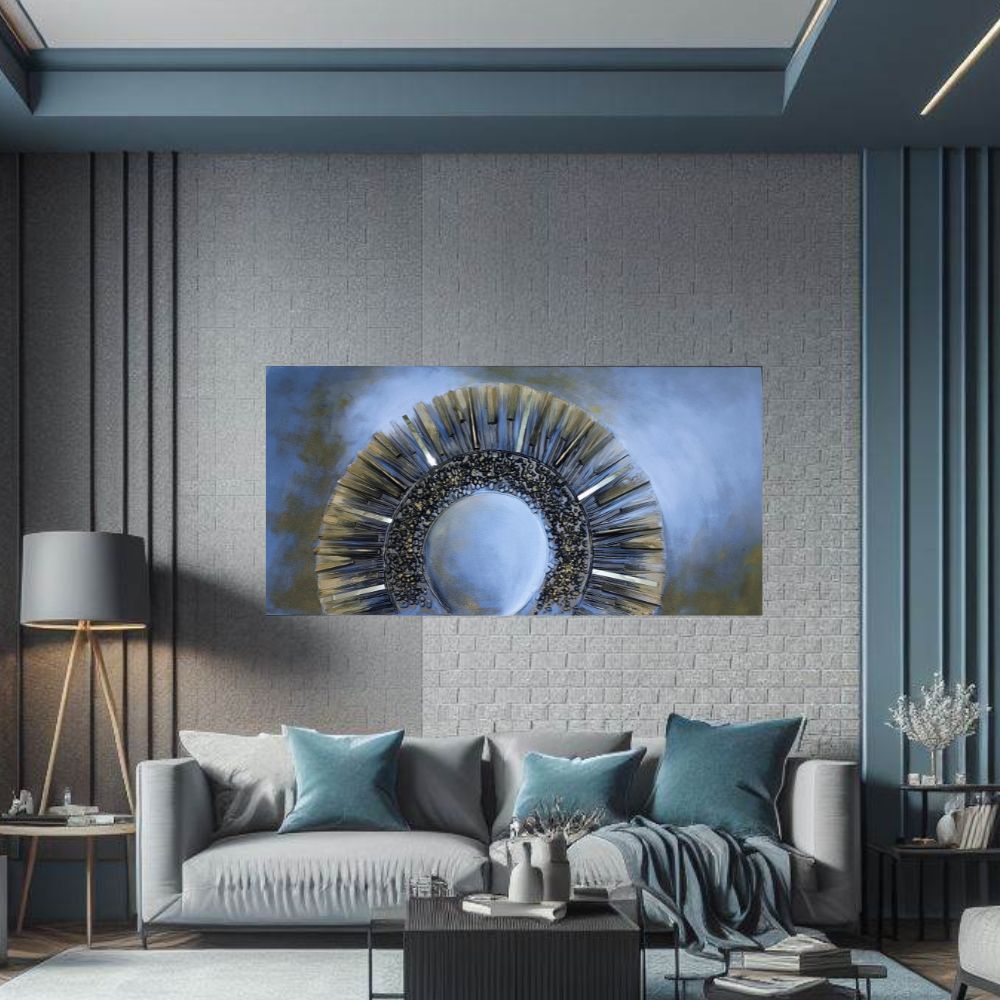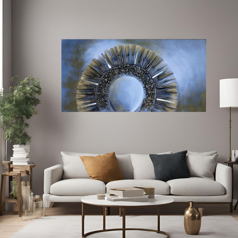 Handmade Embossed Canvas Art Painting With Wooden Frame for Wall Decor, Abstract Geometric Art, Size - 61 X 122 Cm