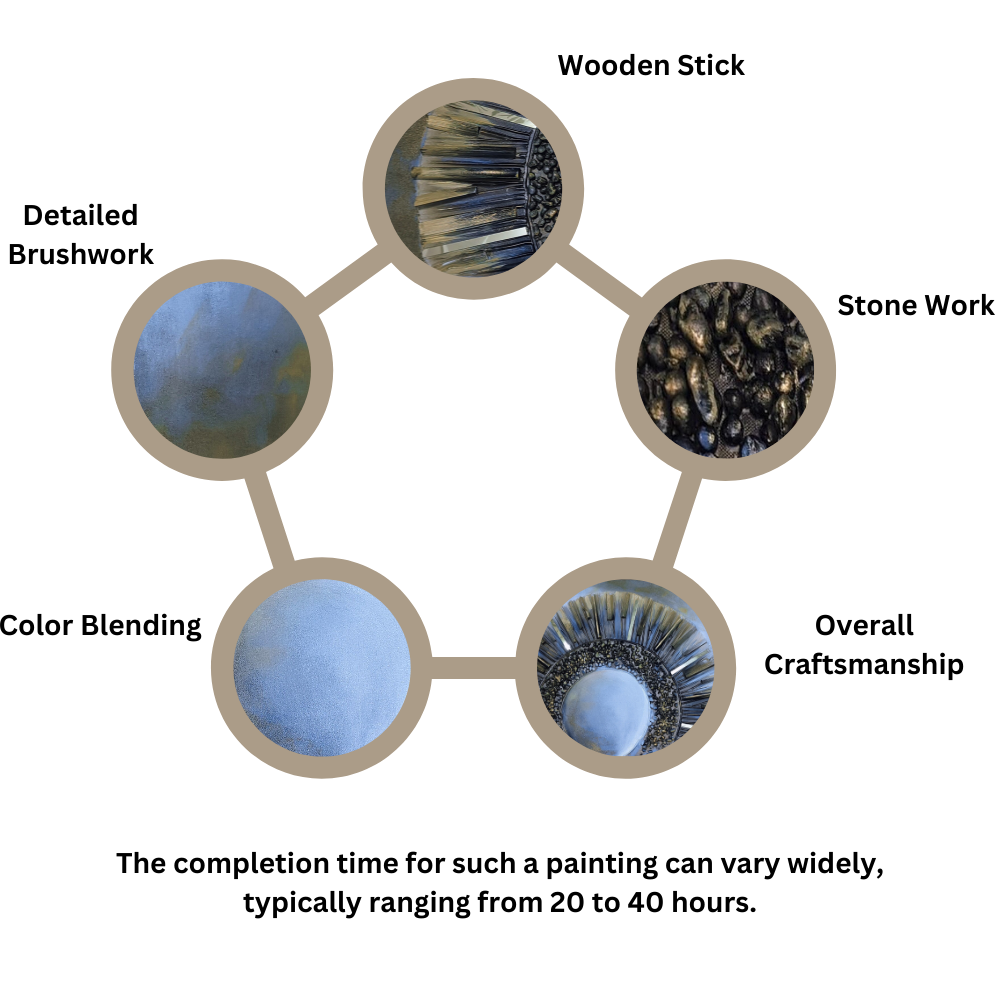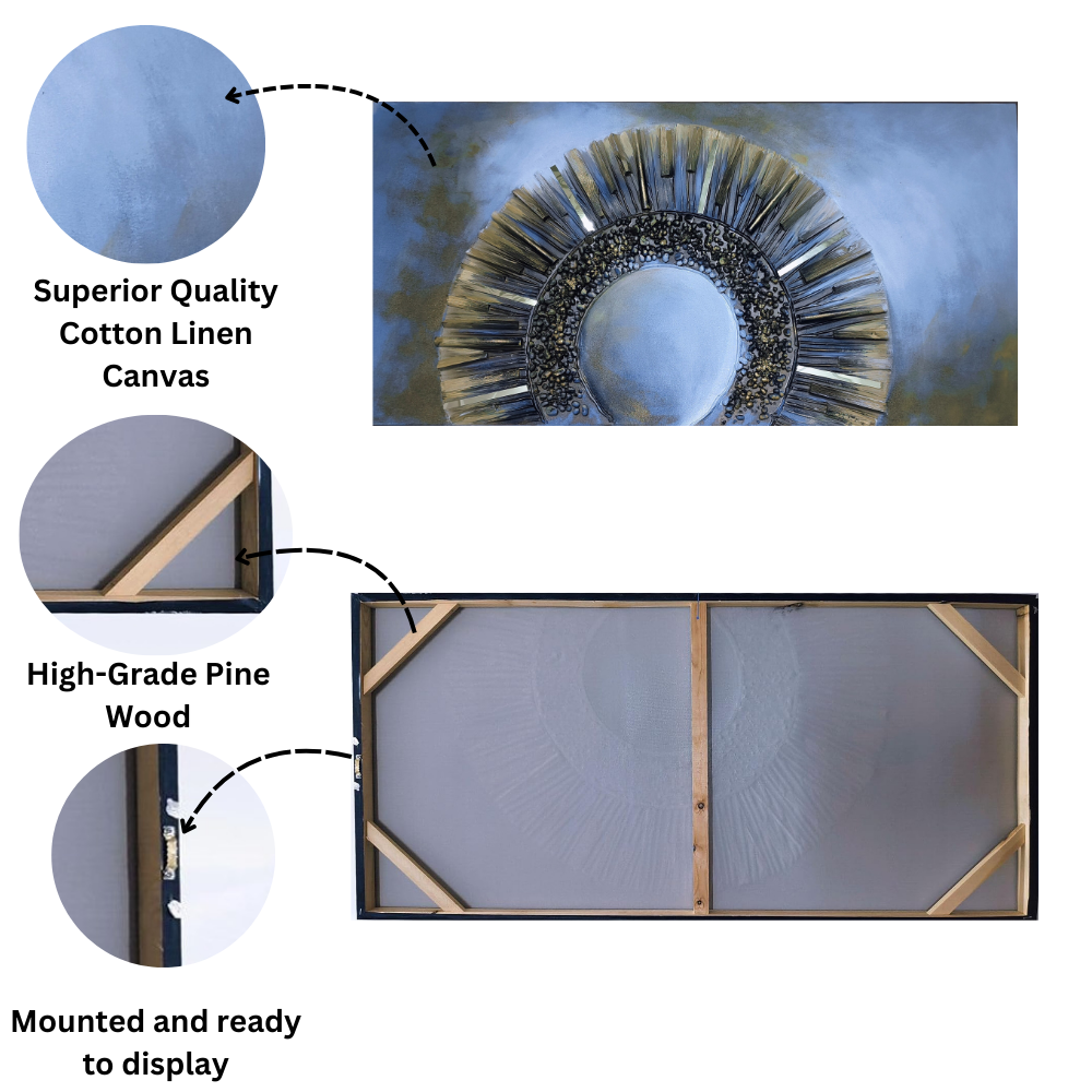 - CARE INSTRUCTION: To maintain the beauty of your handmade canvas painting, keep it out of direct sunlight, dust it gently with a soft cloth, handle it by the frame, and avoid exposure to humidity and sharp objects.