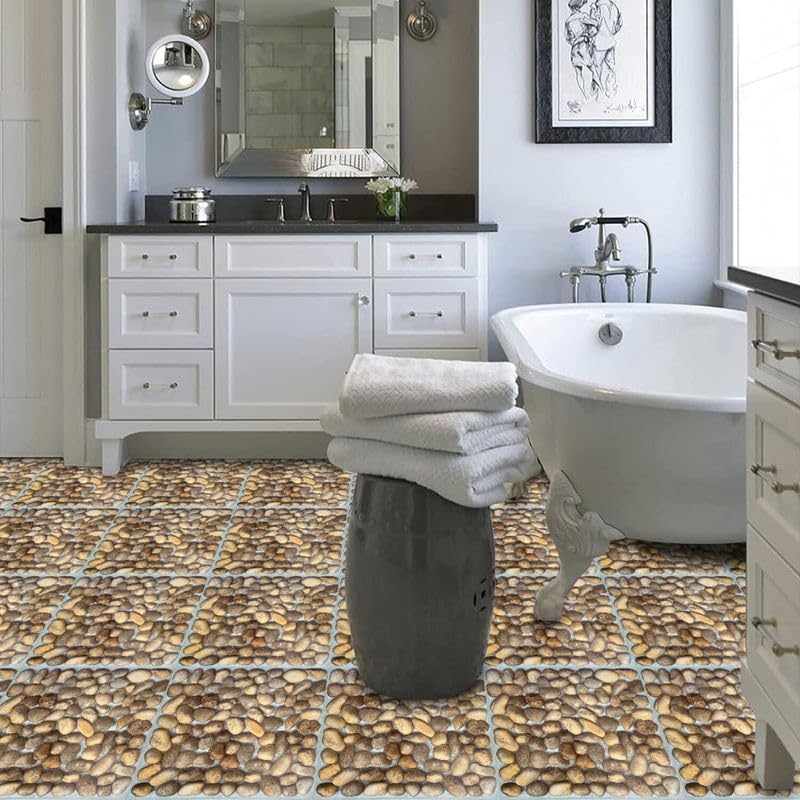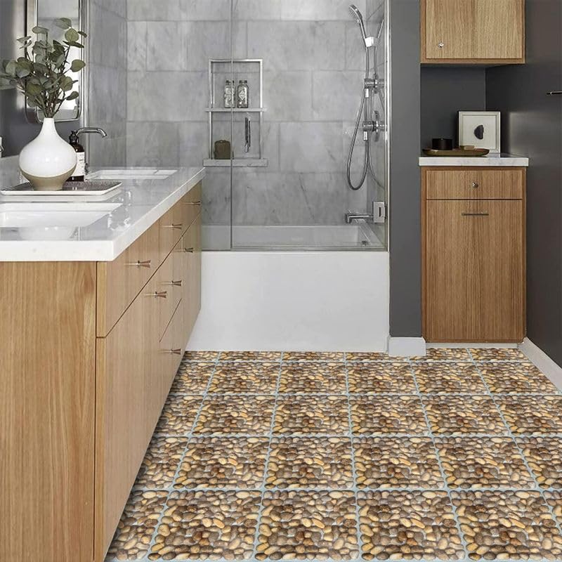 Peel and stick vinyl floor tiles 30 X 30cm (11pcs in a pack) covering 11sqft area- Pebble Design