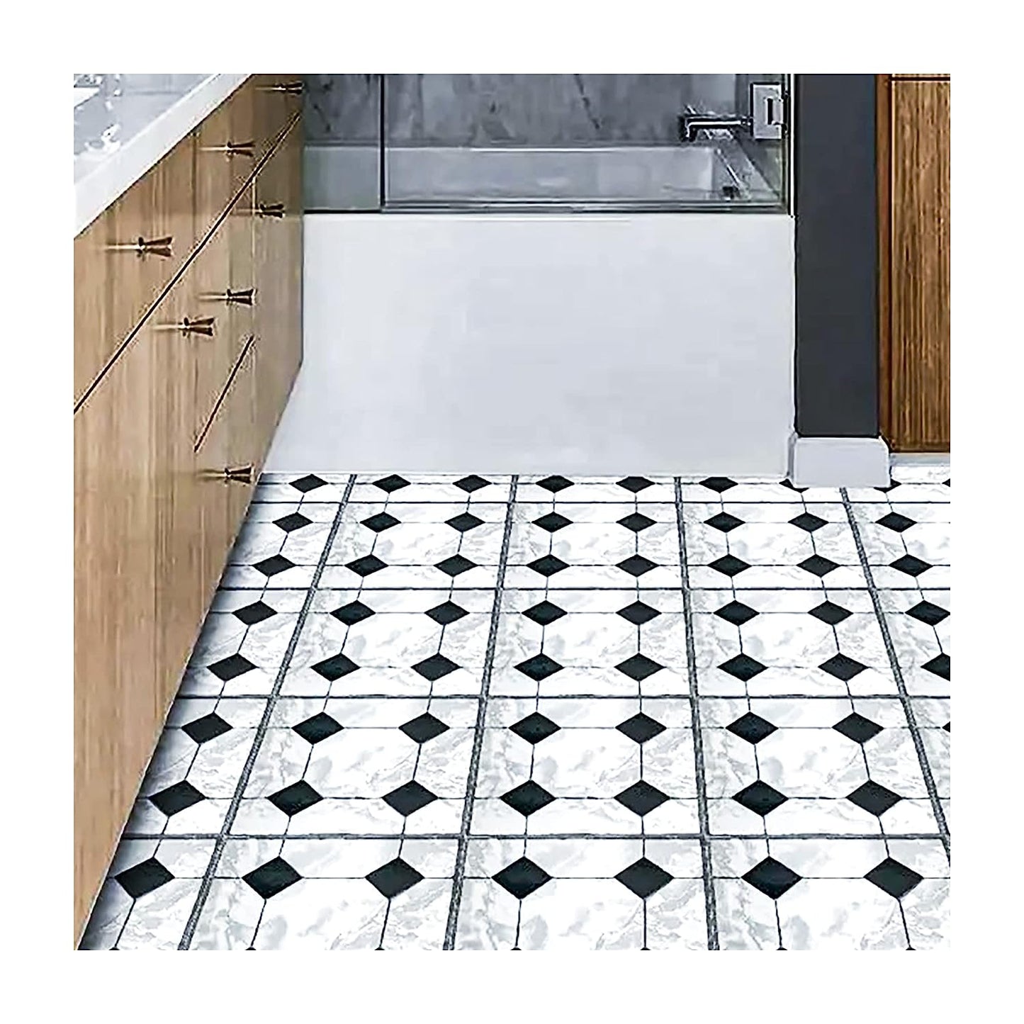 Peel and stick vinyl floor tiles 30 X 30cm (11pcs in a pack) covering 11sqft area- Black and White
