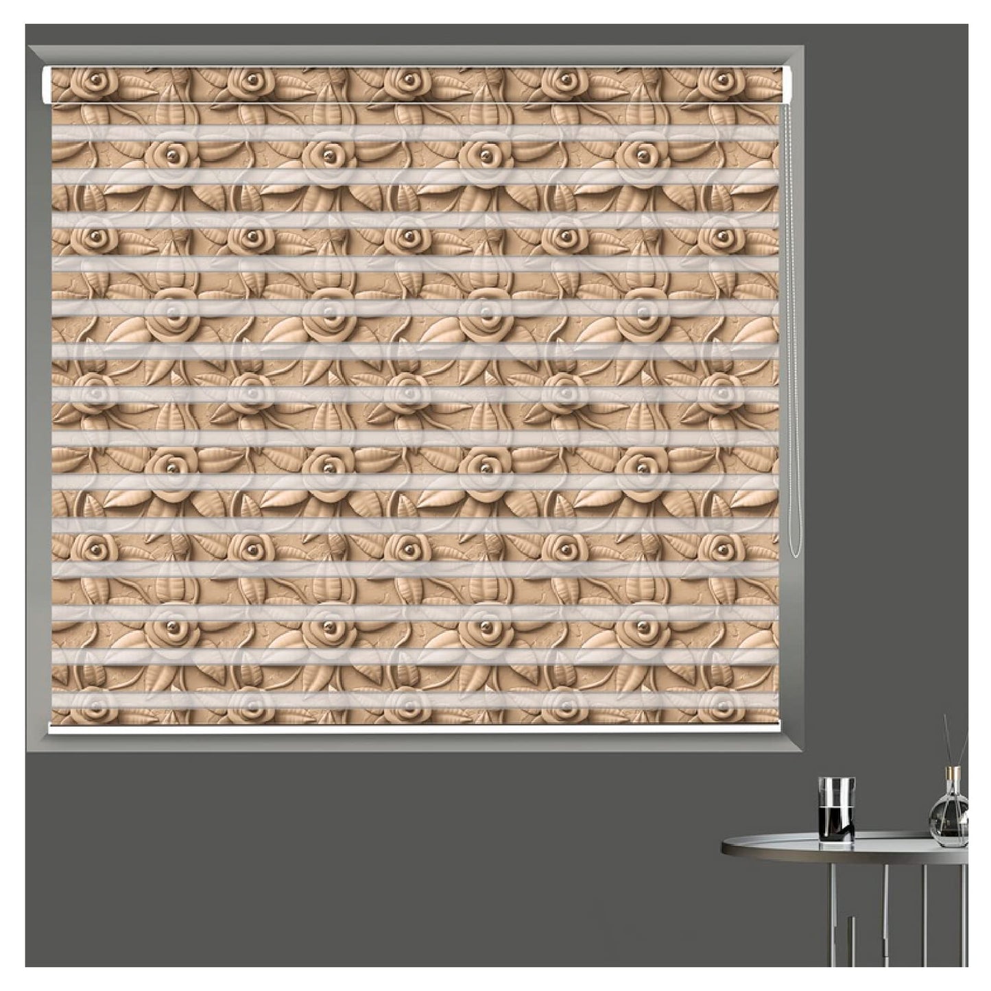 Zebra Blinds for Windows and Doors with Dual Shade, Horizontal Stripes, Blinds for Home & Office (Customized Size, 3D Floral Art Design)