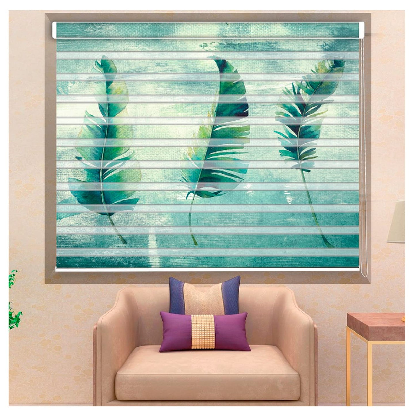 Zebra Blinds for Windows and Doors with Dual Shade, Horizontal Stripes, Blinds for Home & Office (Customized Size, Big Leaves Art Design)