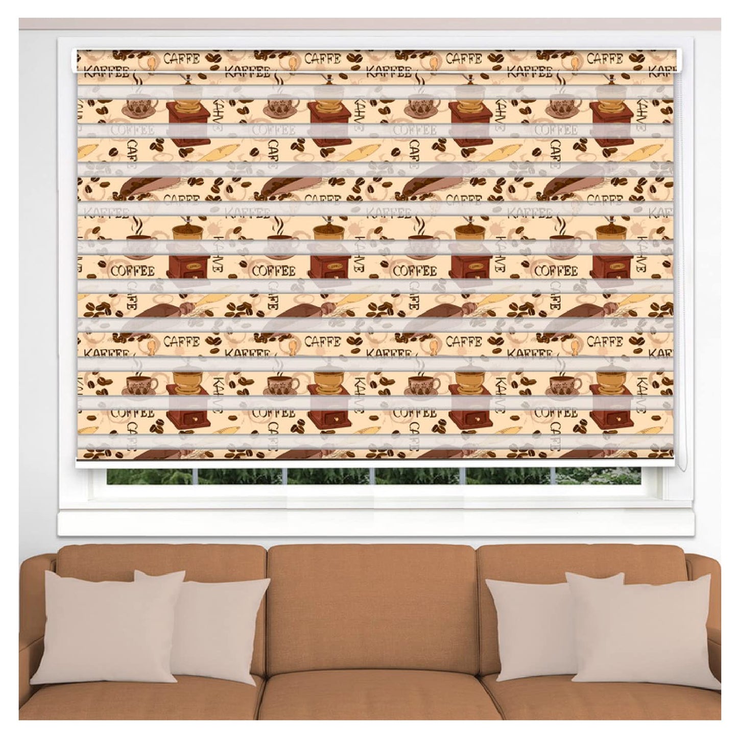 Zebra Blinds for Windows and Doors with Dual Shade, Horizontal Stripes, Blinds for Home & Office (Customized Size, Coffee Art Design)