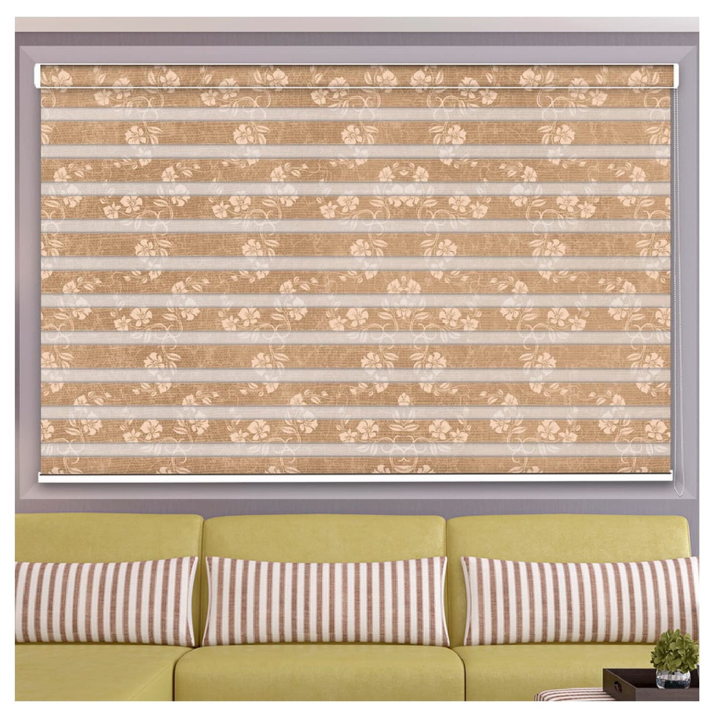 Zebra Blinds for Windows and Doors with Dual Shade, Horizontal Stripes, Blinds for Home & Office (Customized Size, Flower)