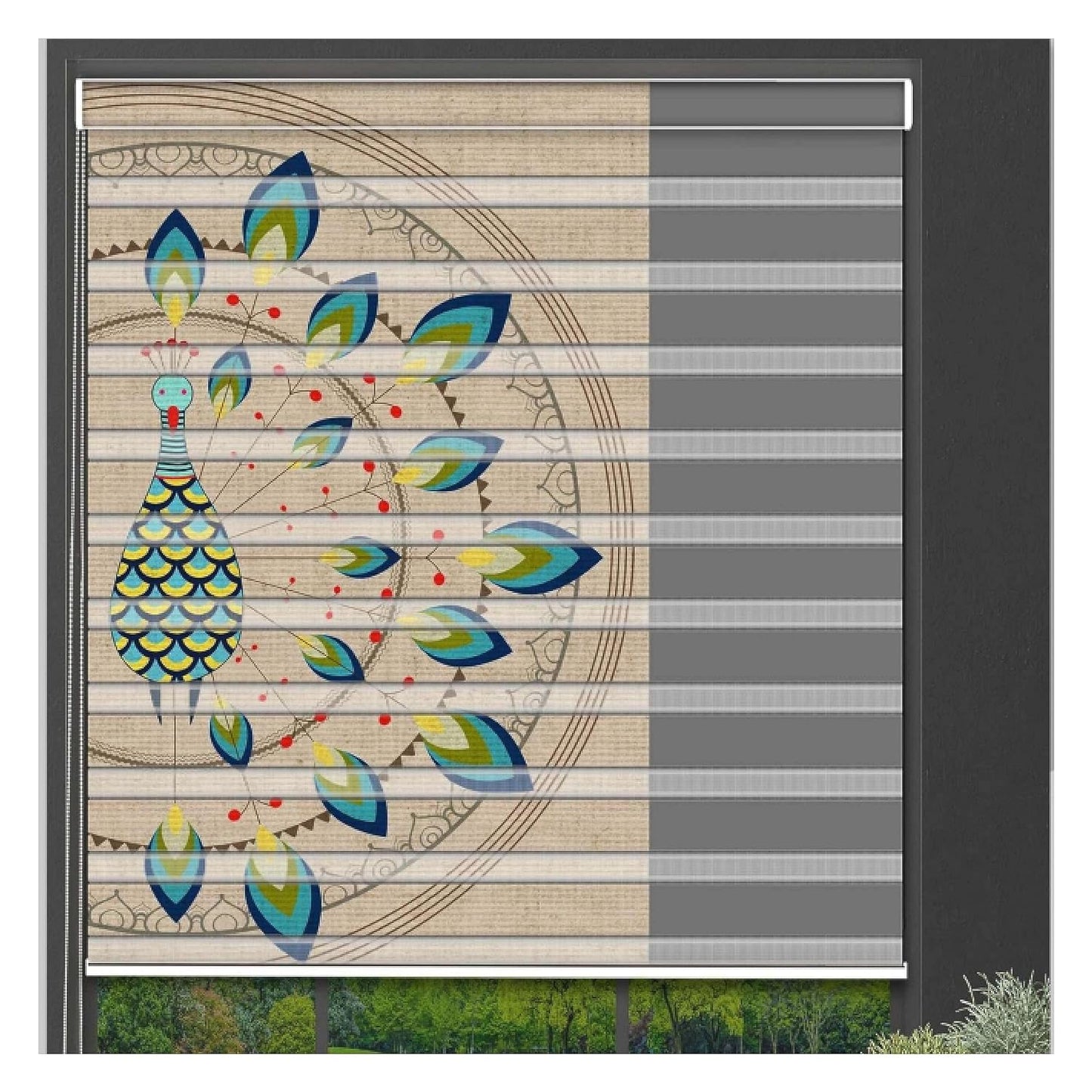 Zebra Blinds for Windows and Doors with Dual Shade, Horizontal Stripes, Blinds for Home & Office (Customized Size, Peacock Feather Design)
