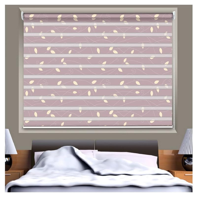 Zebra Blinds for Windows and Doors with Dual Shade, Horizontal Stripes, Blinds for Home & Office (Customized Size, Small Leaves)