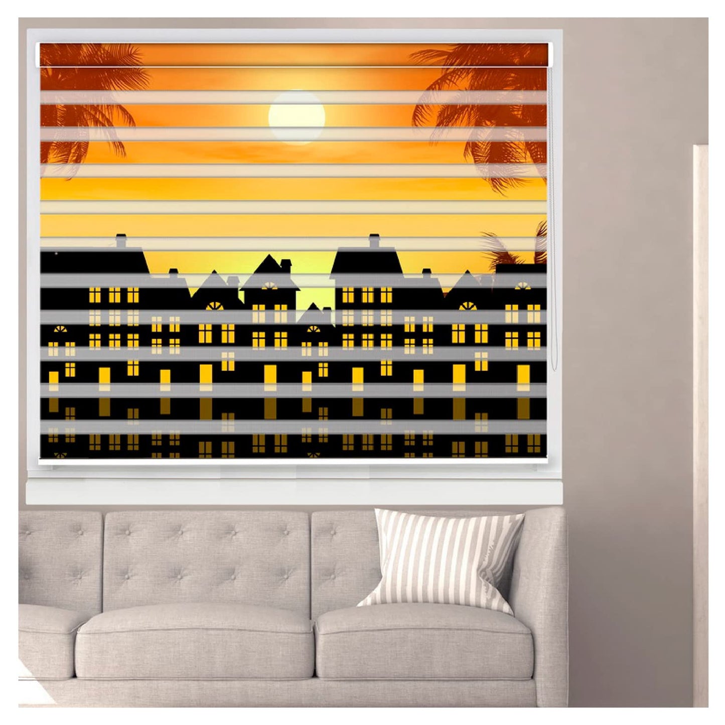 Zebra Blinds for Windows and Doors with Dual Shade, Horizontal Stripes, Blinds for Home & Office (Customized Size, Sunset in City)