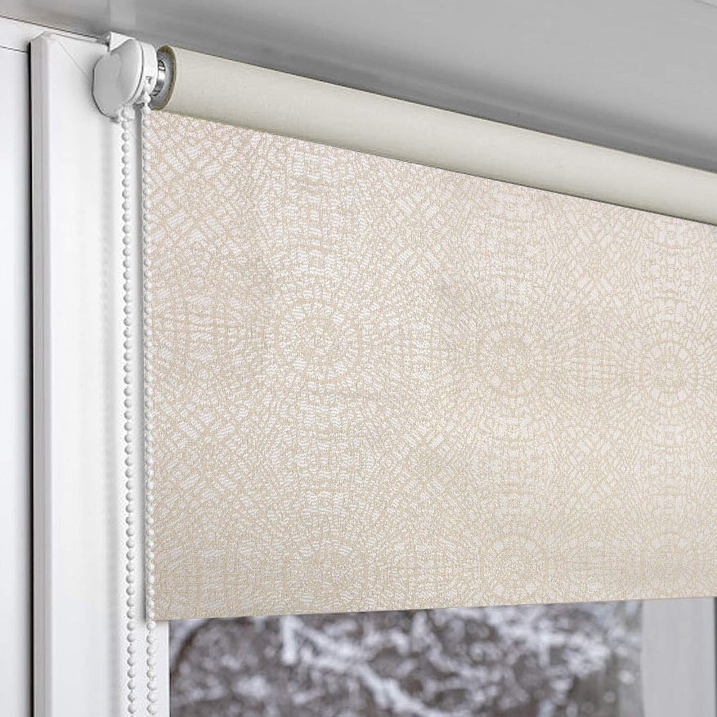 Blackout Fabric Window Roller Blind Big Circle Design, Cream