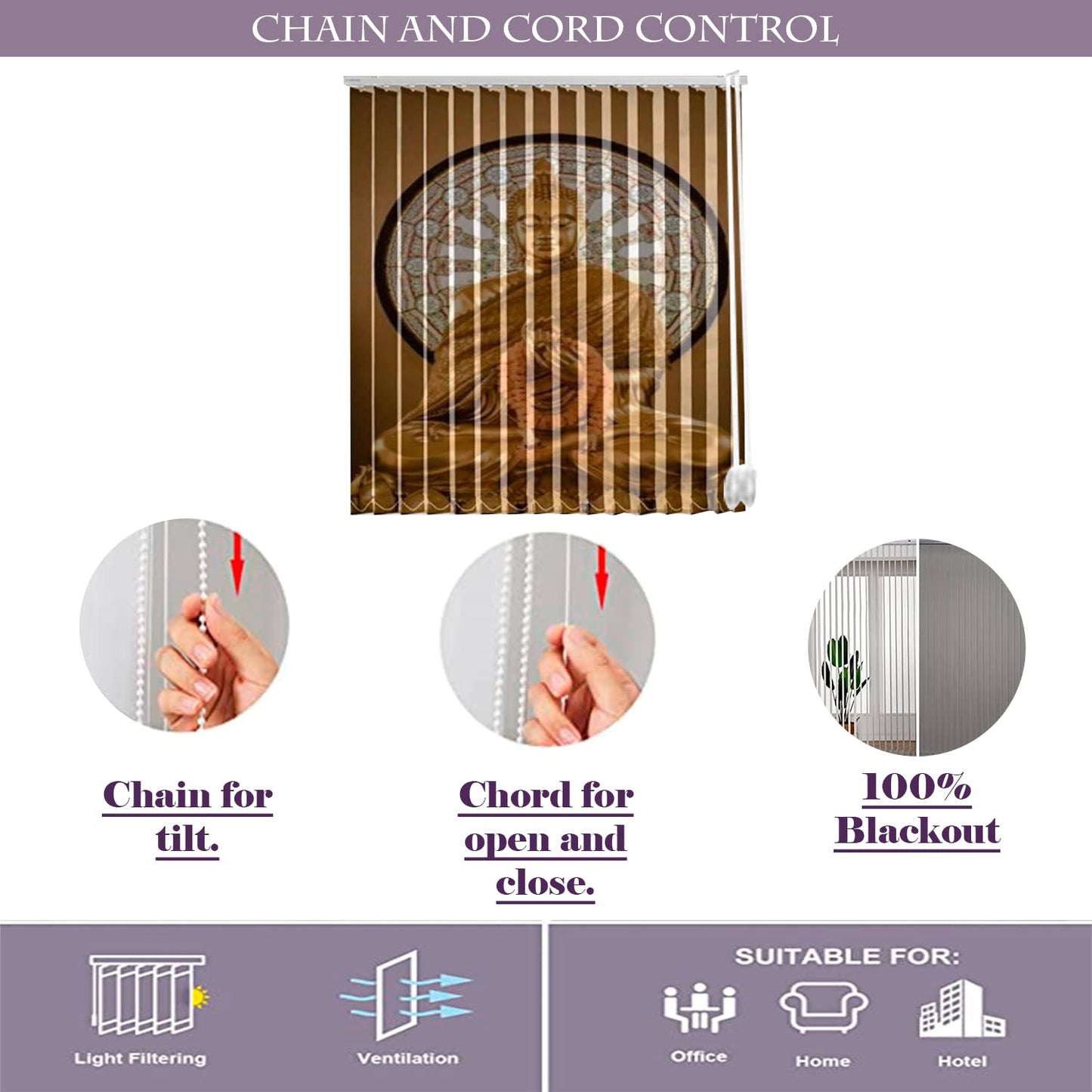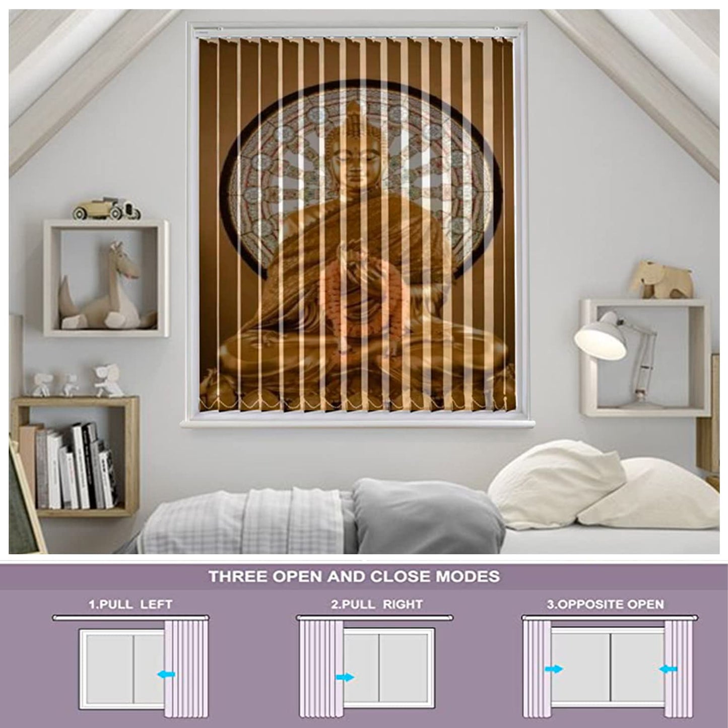 Vertical Blinds for Windows,French Door and Sliding Door Blinds for Smart Home Office, (Customized Size, Golden Buddha Statue)