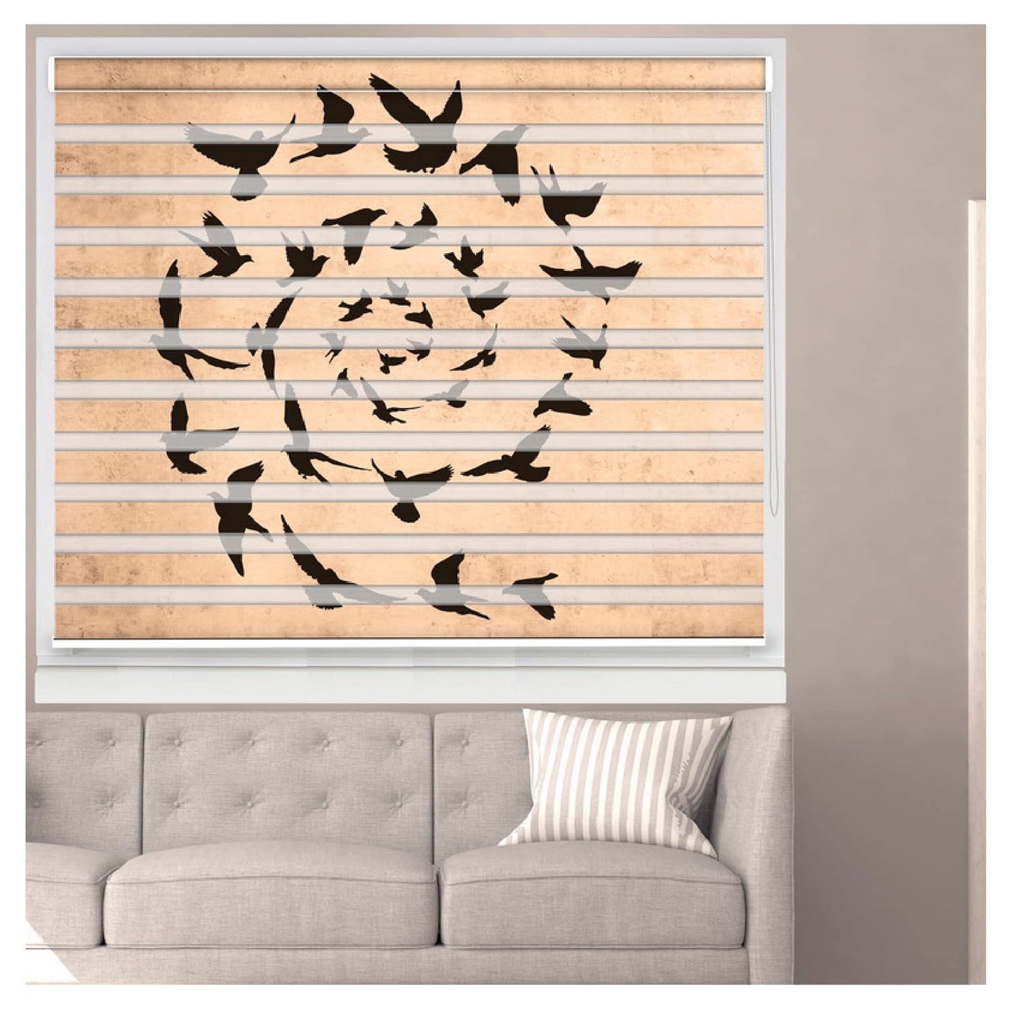 Zebra Blinds for Windows and Doors with Dual Shade, Horizontal Stripes, Blinds for Home & Office (Customized Size, Birds Flying Circular Design)