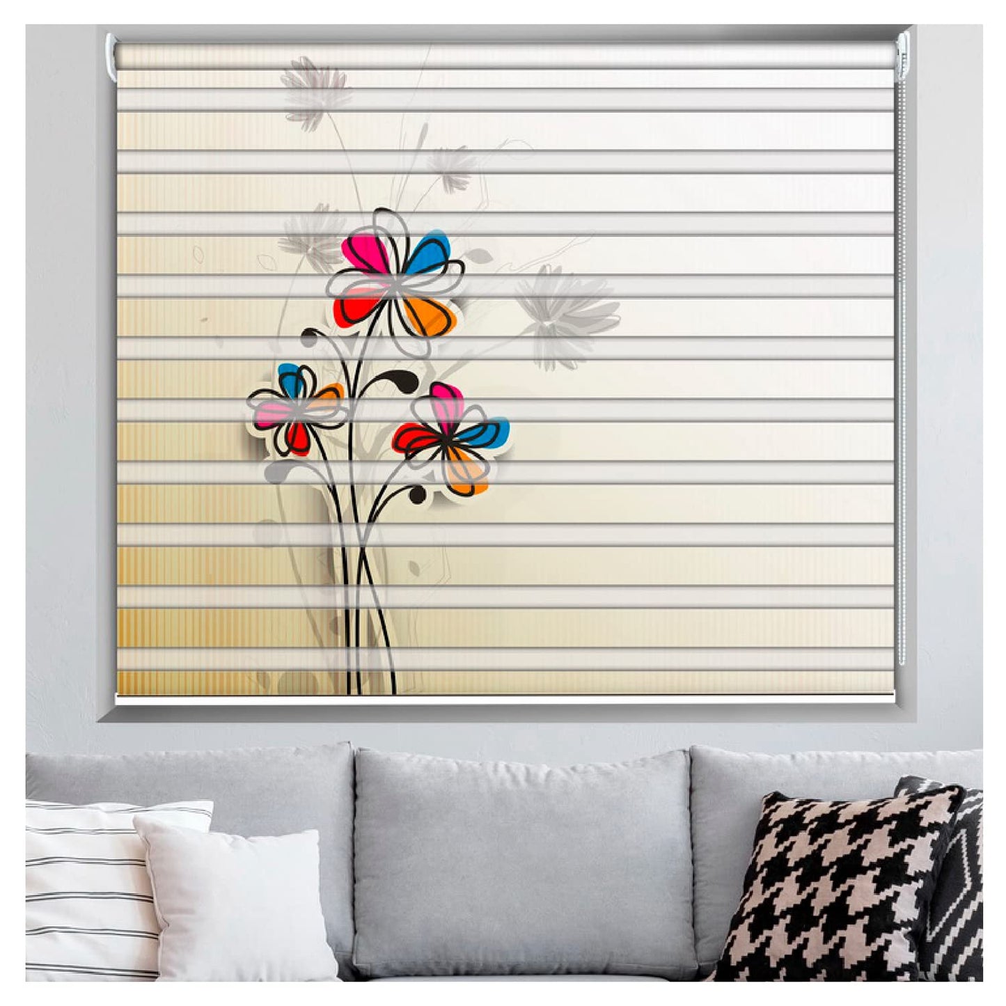 Zebra Blinds for Windows and Doors with Dual Shade, Horizontal Stripes, Blinds for Home & Office (Customized Size, Blue Red Flower Art Design)