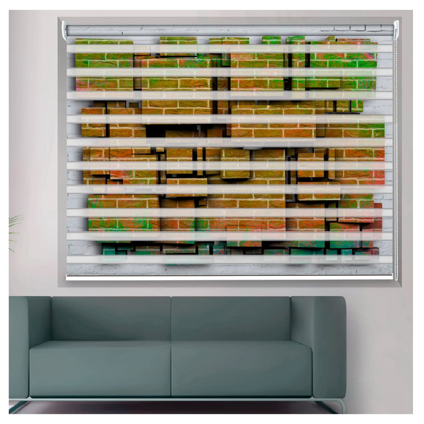 Zebra Blinds for Windows and Doors with Dual Shade, Horizontal Stripes, Blinds for Home & Office (Customized Size, Brick Art Design)