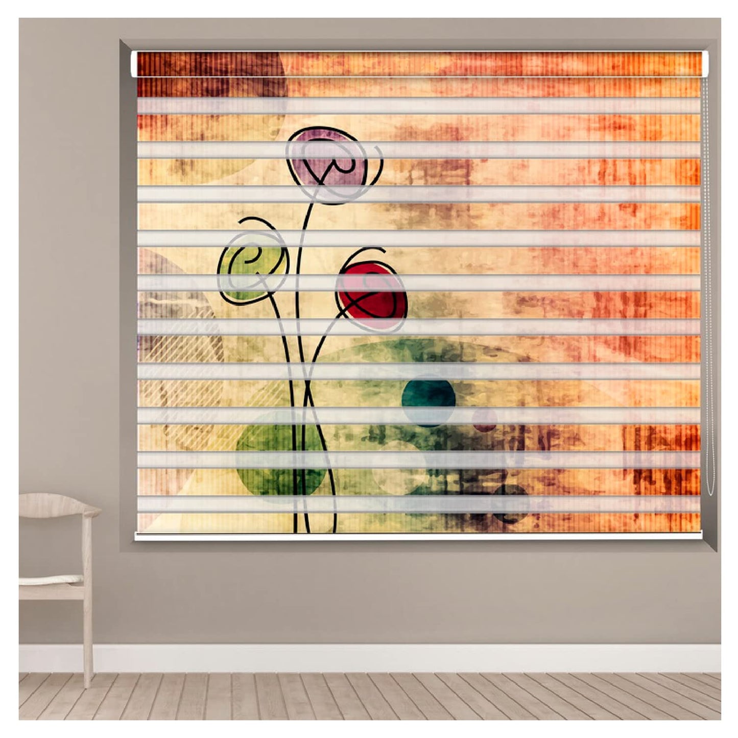 Zebra Blinds for Windows and Doors with Dual Shade, Horizontal Stripes, Blinds for Home & Office (Customized Size, Flower Art)